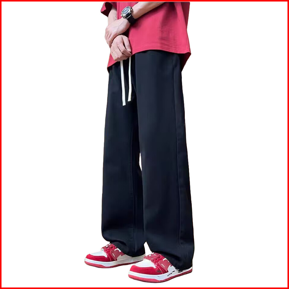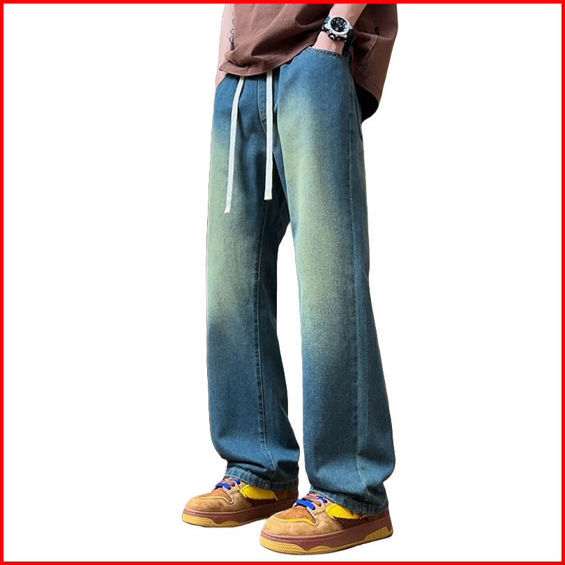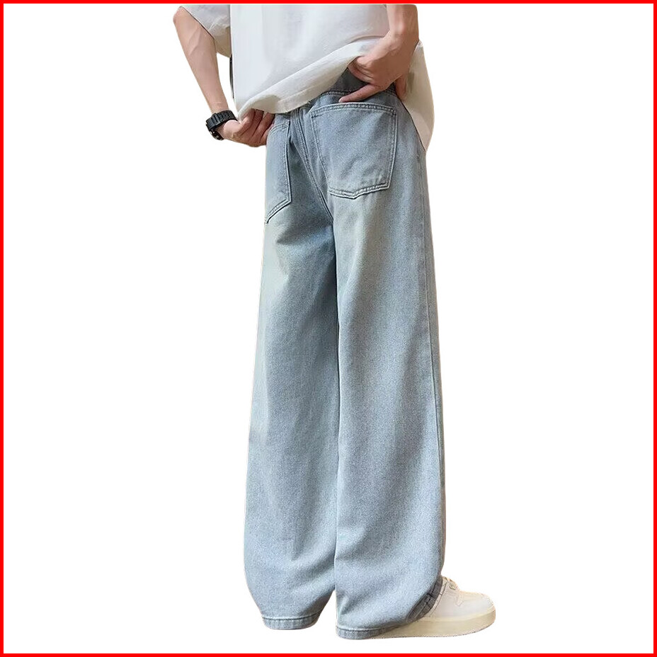 St.lab Studio Celana Jeans Pria Pinggang Elastis Celana Denim Longgar Kasual Lurus Kaki Lebar