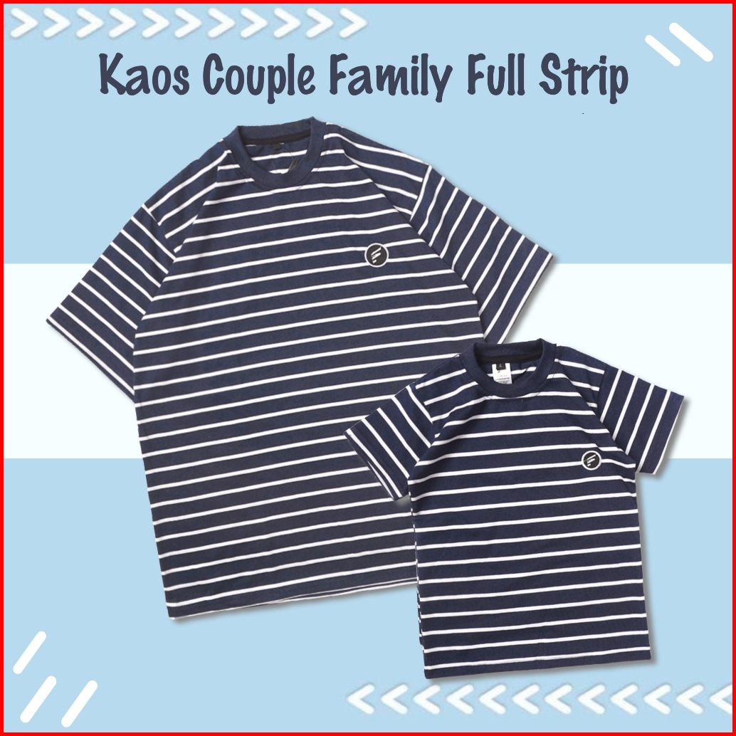 Vendom Kaos Couple Family Motif Salur Strip Anak Dan Dewasa Kaos Seragam Keluarga Lengan Pendek