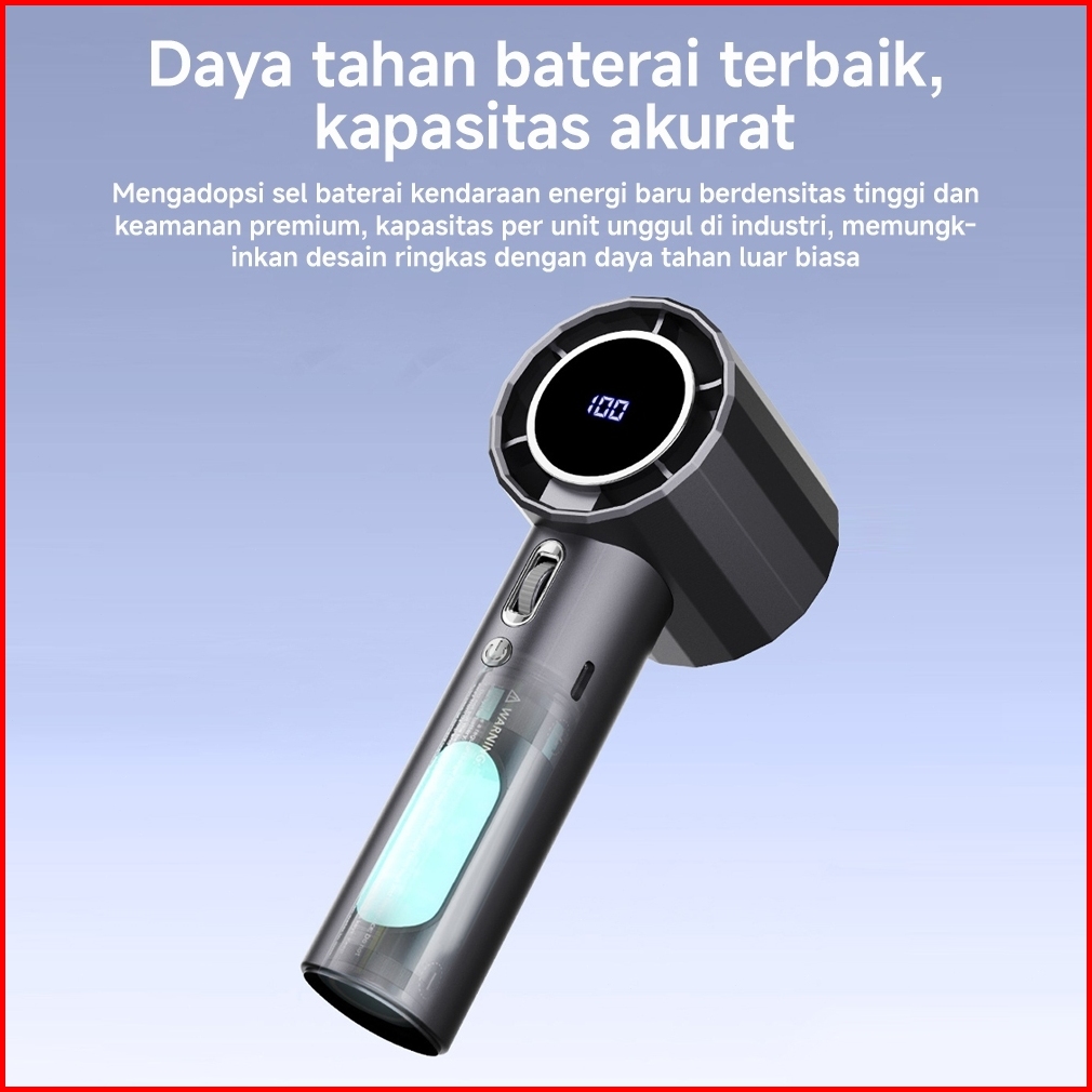 Kipas Angin Turbo 20000mah Strong Wind 100 Gear - Portable Usb Tampilan Led Bonus Tali Leher Kabel Tahan 15 Jam Untuk Ca