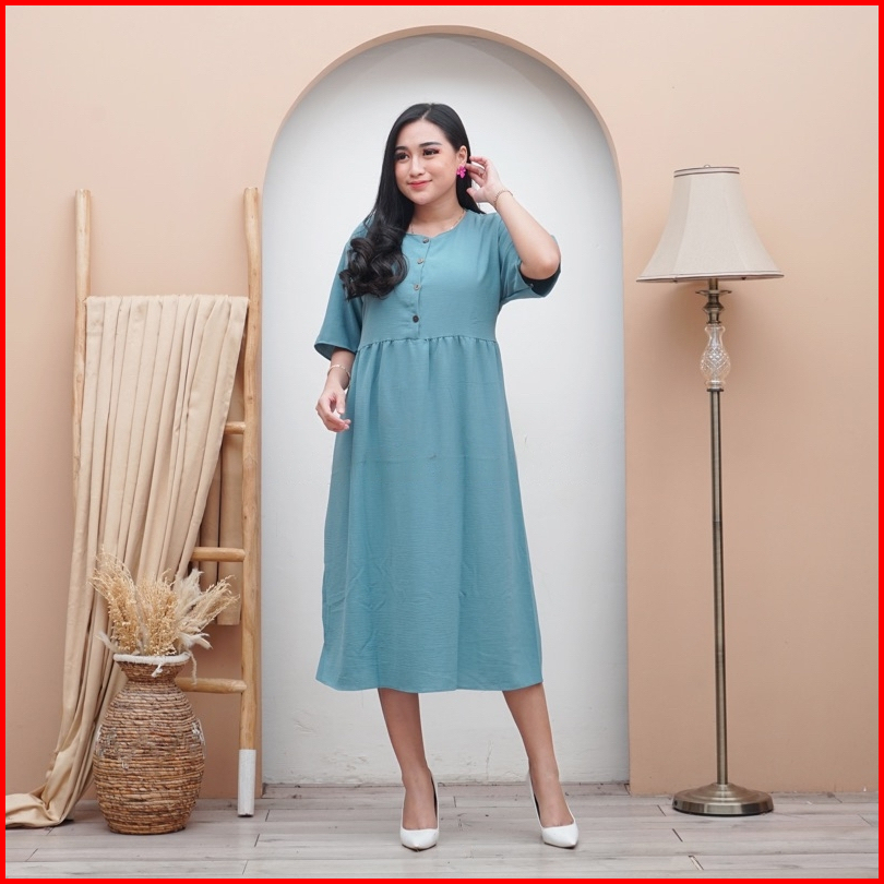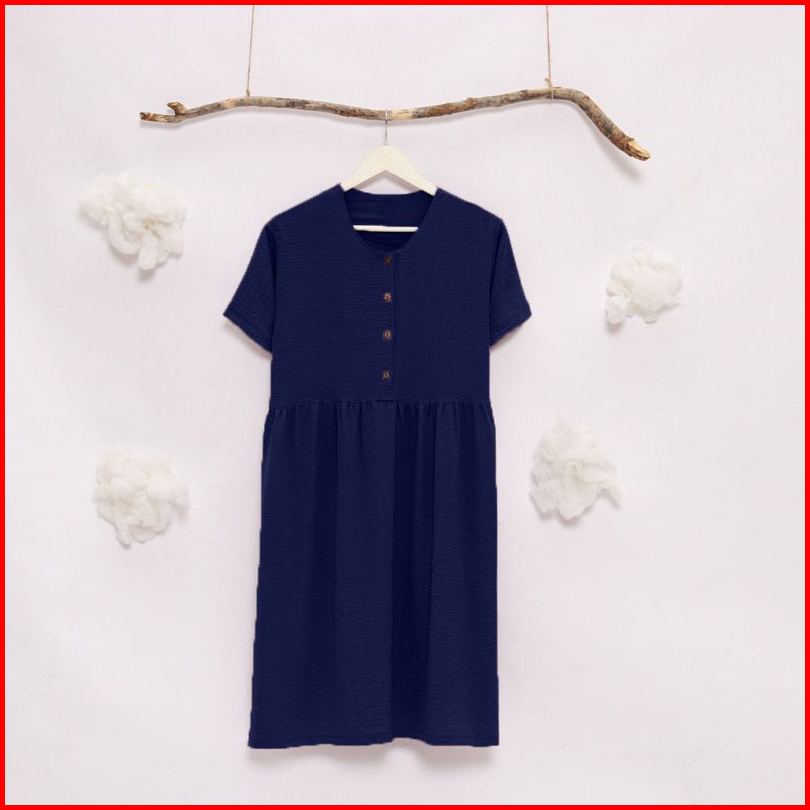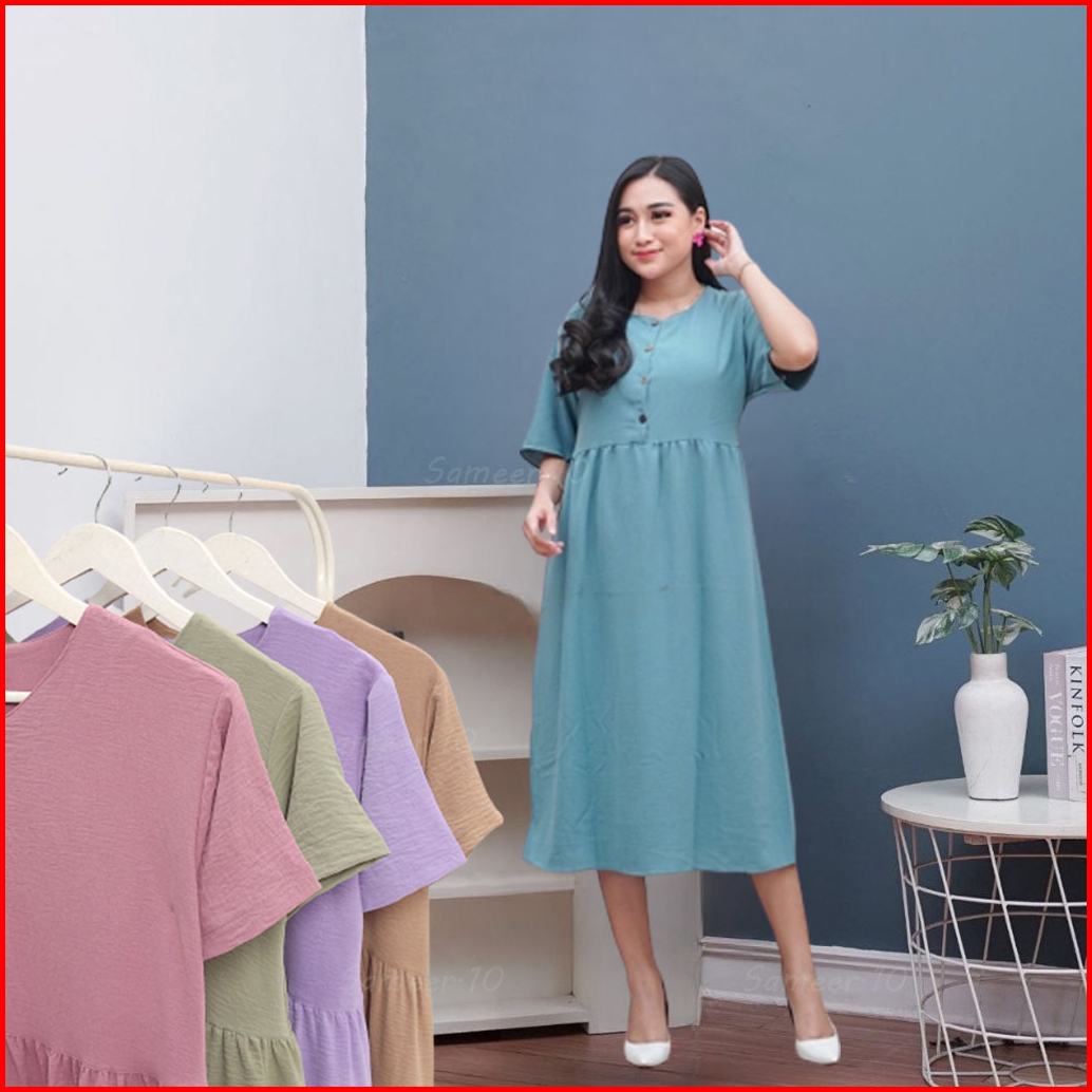 Daster Crinkle Airflow Busui Kekinian Home Dress Polos Wanita Berkancing