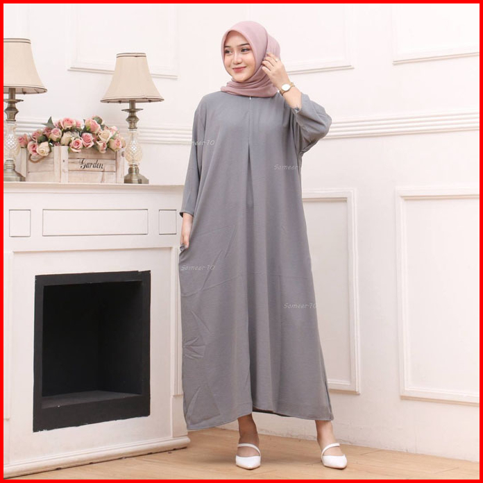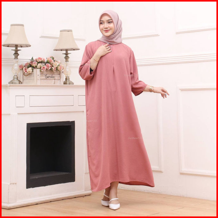 Daster Gamis Crinkle Polos Lengan 3 4 Busui Kekinian