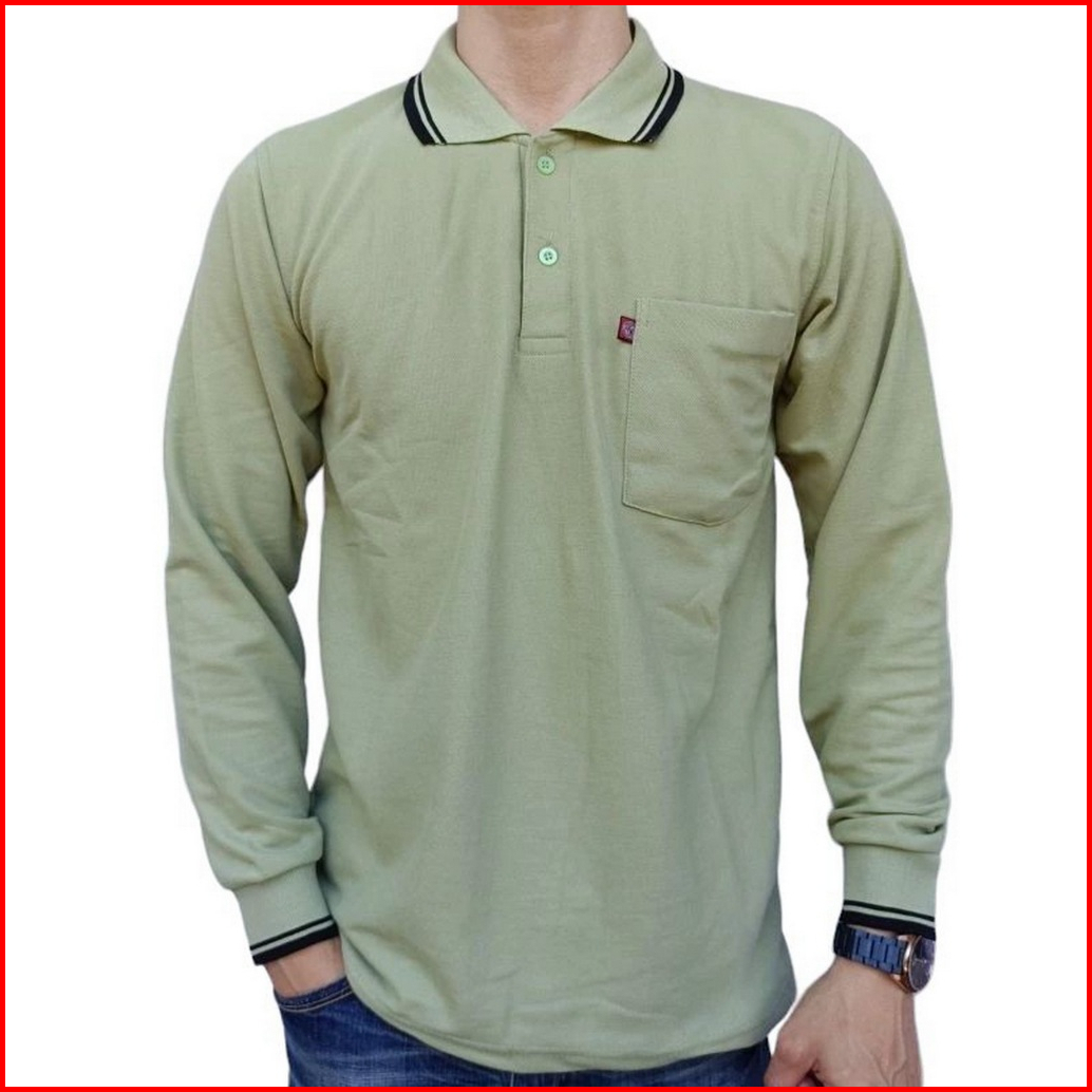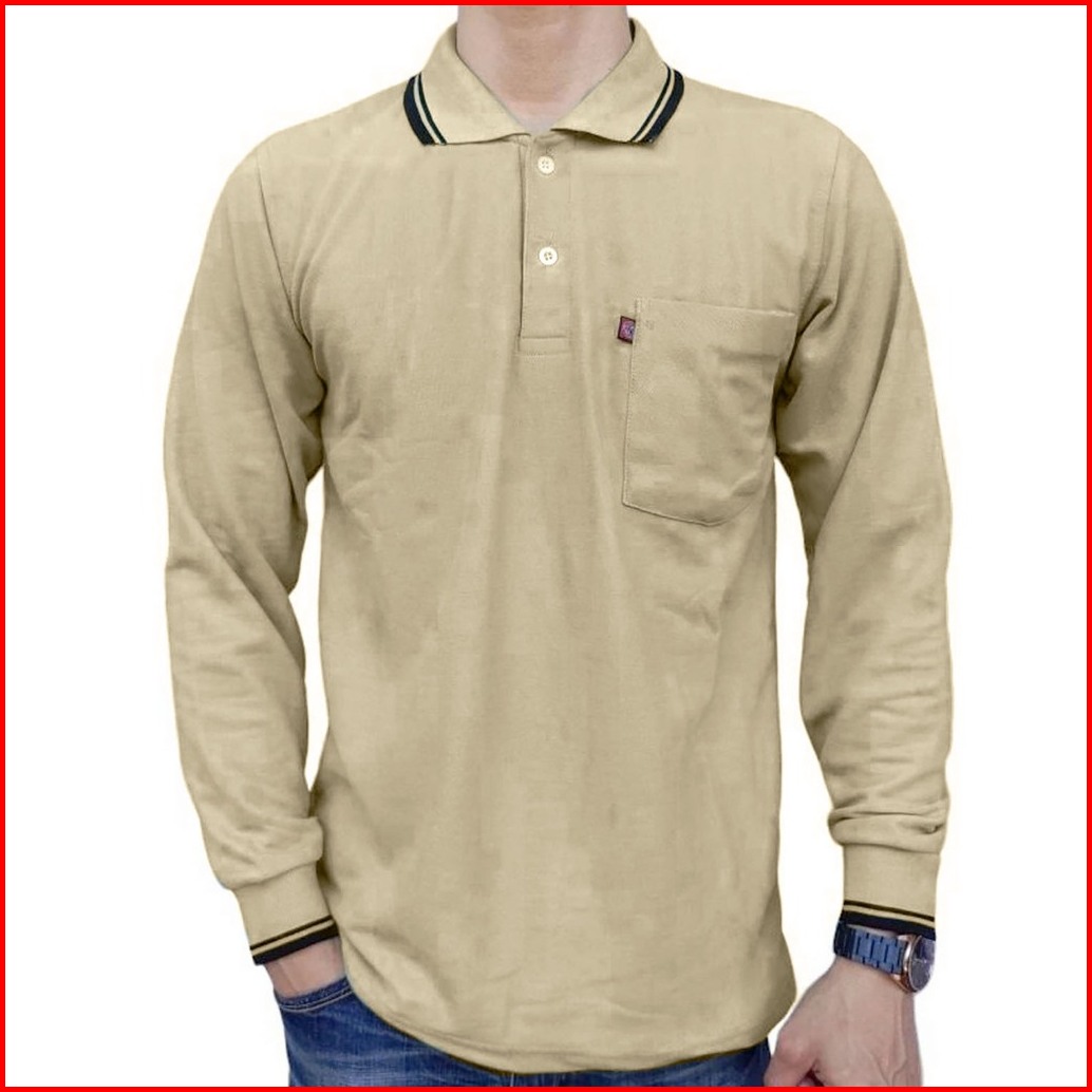 Afada - Kaos Kerah Pria Polo Shirt Saku Polos Kaos Seragam Pria Kaos Polos Lengan Panjang