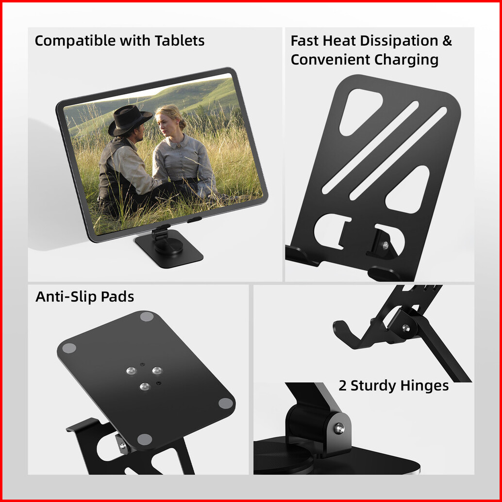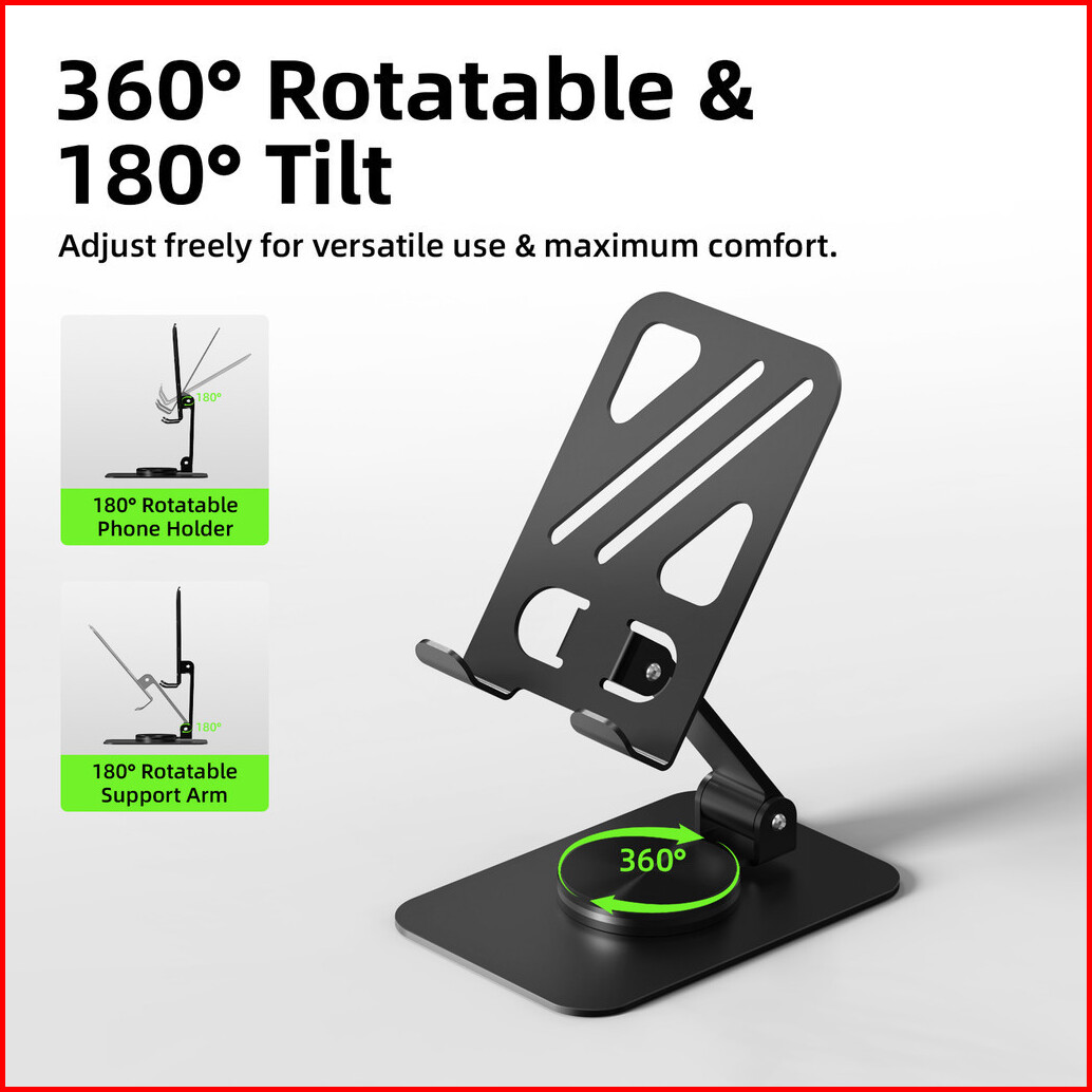 Goojodoq 360 Rotating Phone Stand Foldable Design With Non-slip Pad Perfect For Video Calls Watching Online Learning
