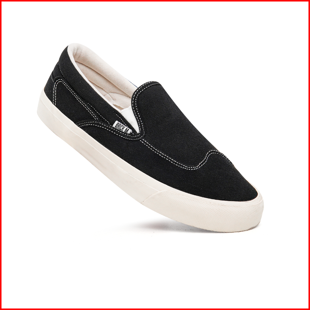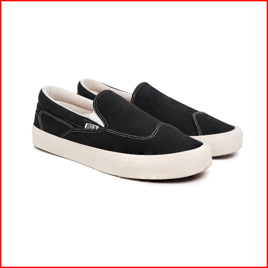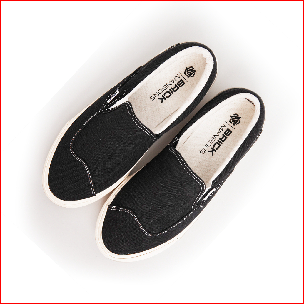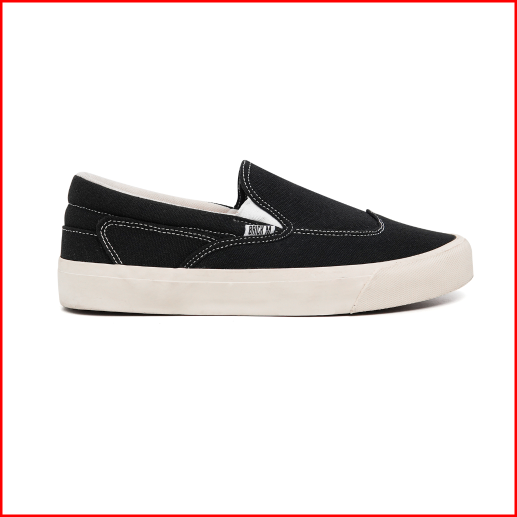 Brick Mansions - Olimpus Black White Sepatu Slip On Sneakers Casual Pria Wanita