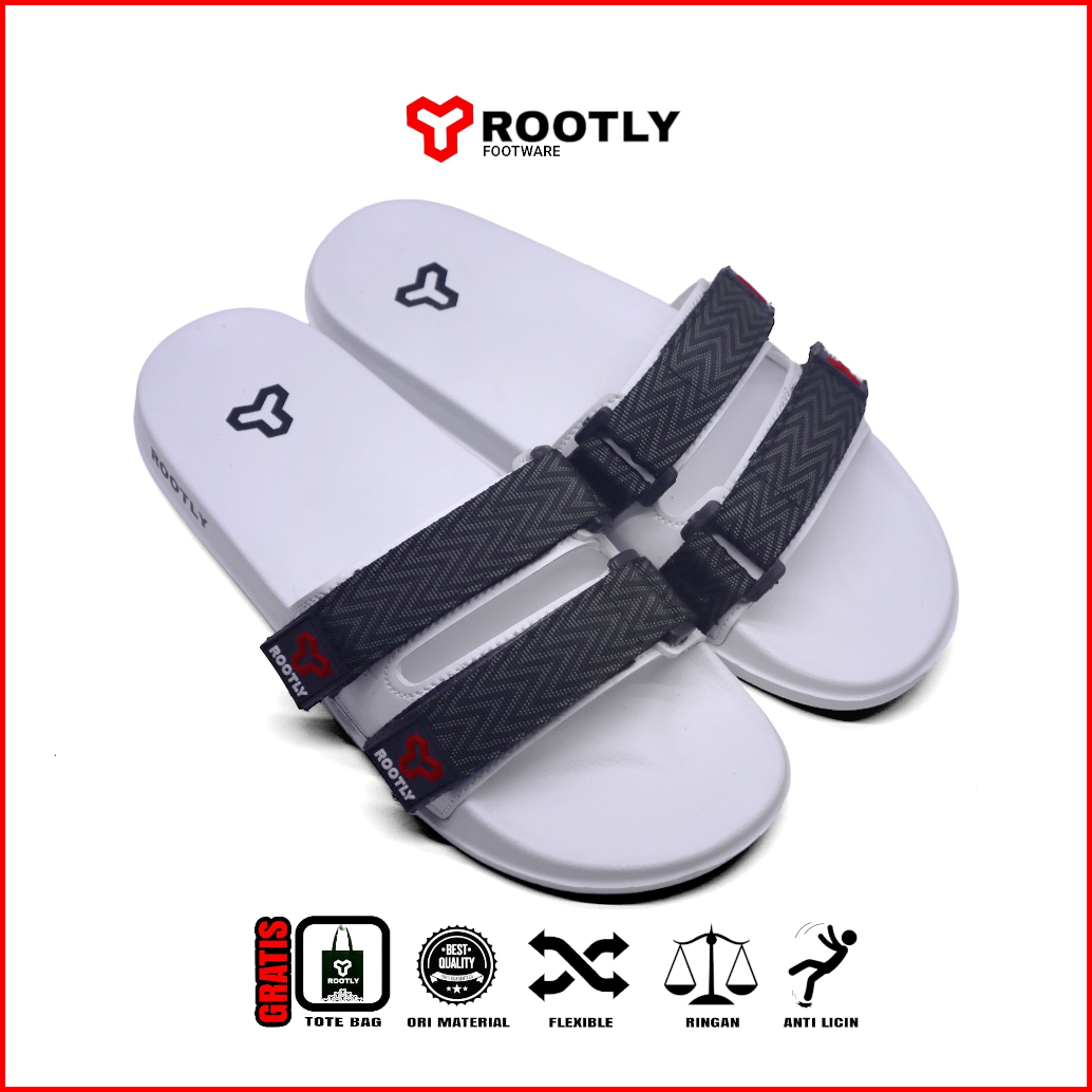 Rootly - Sandal Pria Webing White Motif Trendy Hits