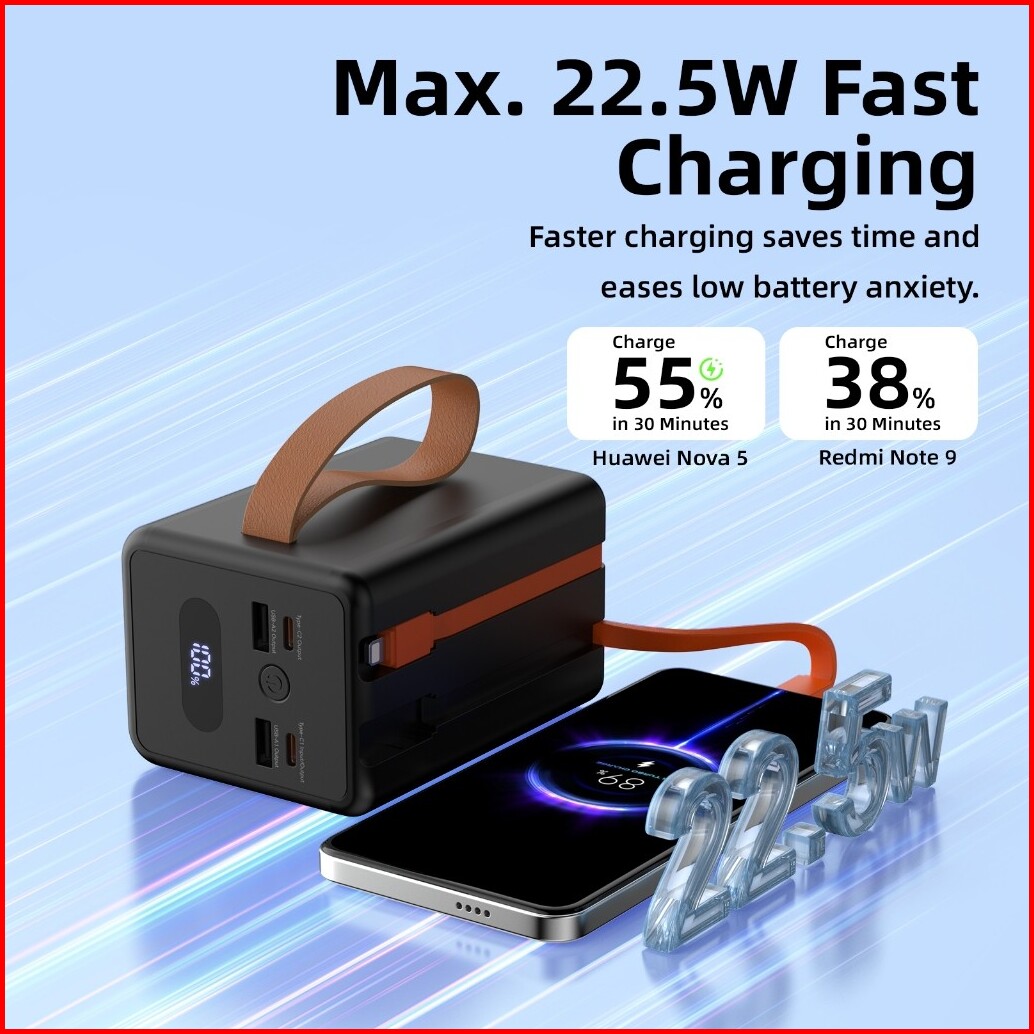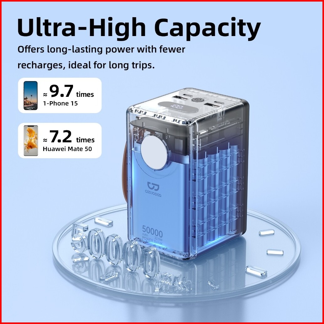 Goojodoq 22.5w 50000mah Wired Powerbank Large Capacity Fast Charging Type C Usb For Outdoor Hiking