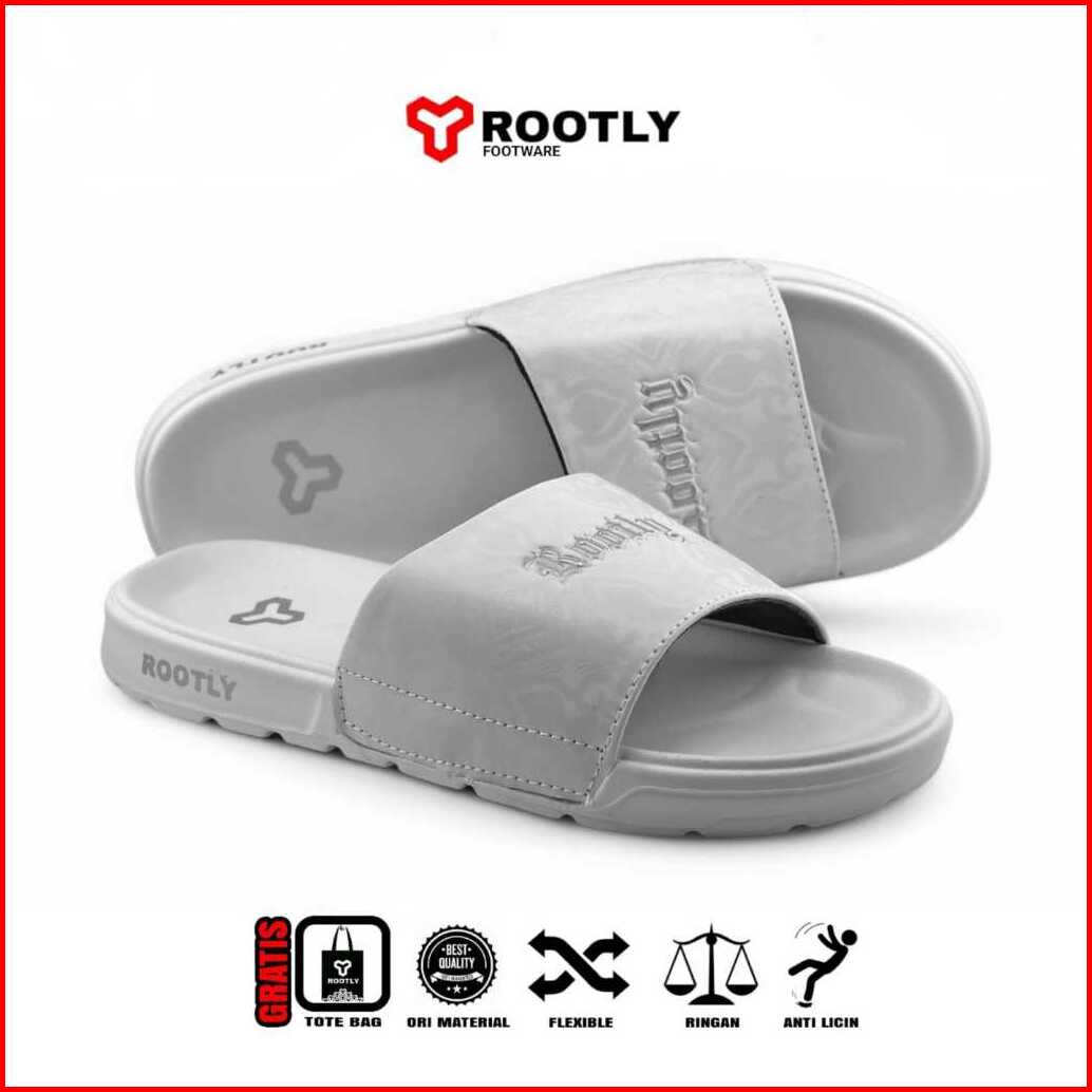 Rootly - Sandal Pria Slipper Fullwhite Shift Silver