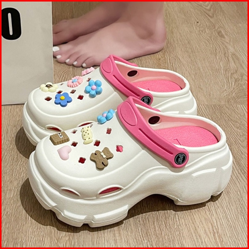 Sandal Lubang 5 5 Cm Dengan Sol Tebal Untuk Wanita Musim Panas 2025 Baru Anti-selip Tinggi Dengan Kepala Eva Sandal Anak
