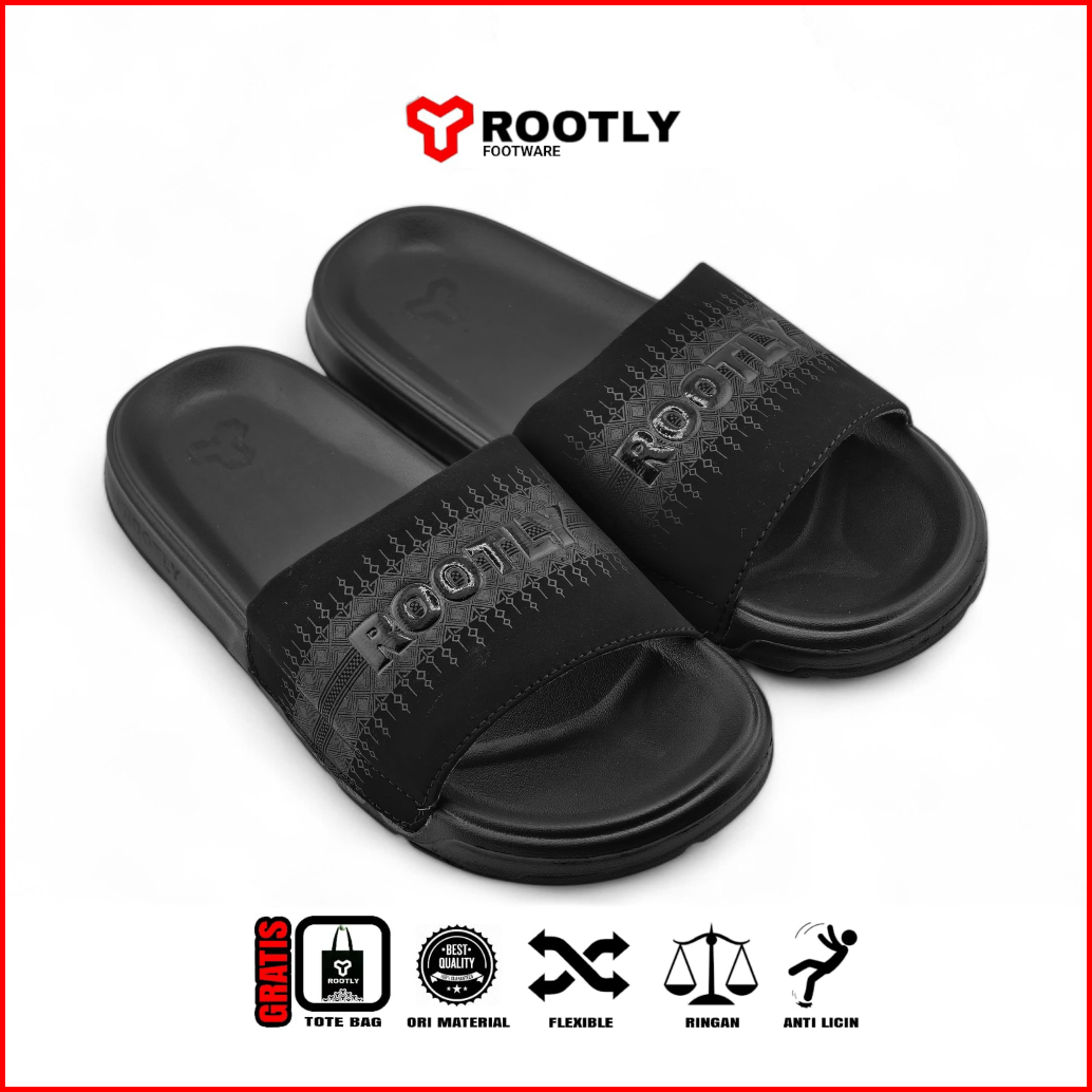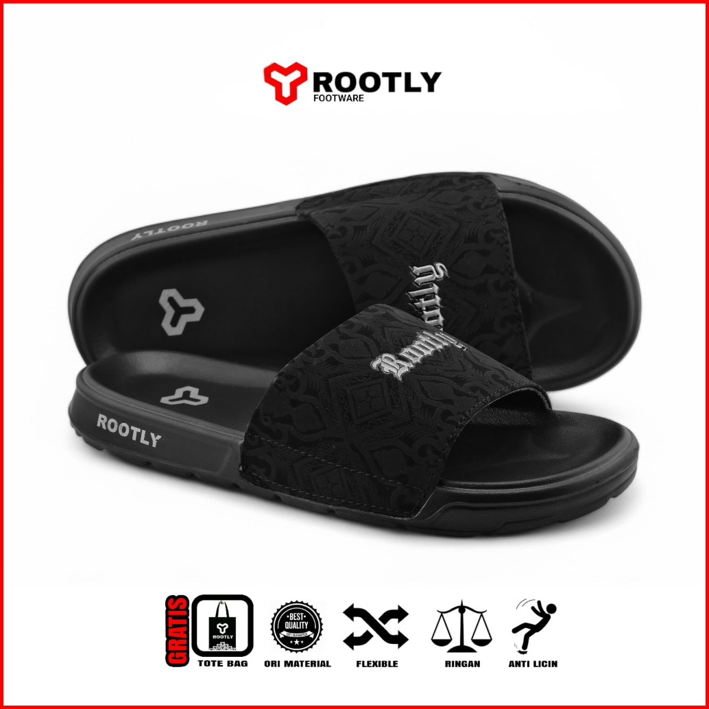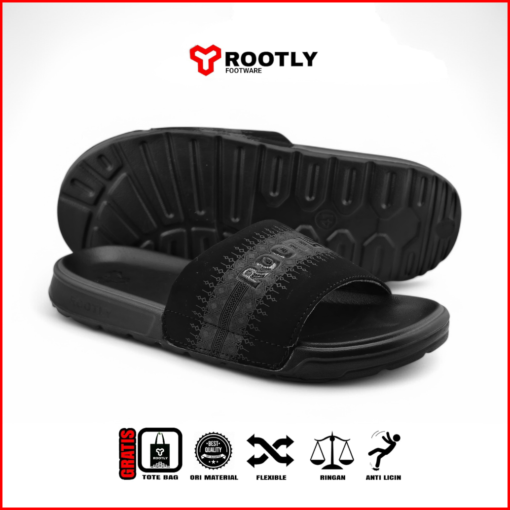 Rootly Sandal Pria Selop Fullblack Motif