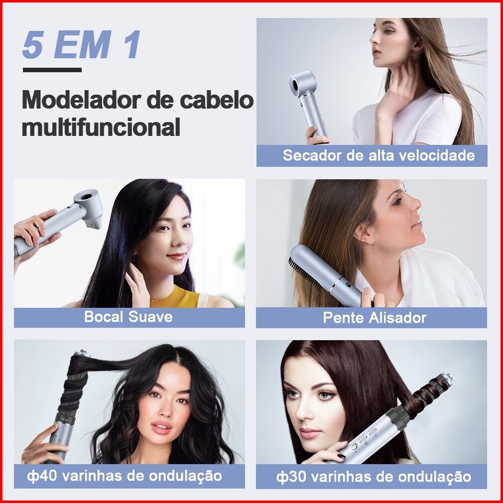 Gokoco Multifunctional High Speed Hair Dryer Set 5-in-1 Hair Dryer Brush With Straightening And Curling Iron