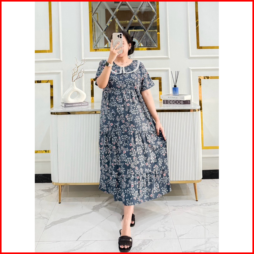 Daster Adela Jumbo Ld 116 Cm Busui Wanita Bahan Rayon Premium Adem Nyaman Ratu Laku Daster