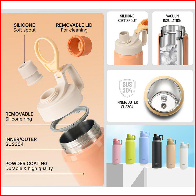 Codoriginal Tyeso Tumbler Sport Vacuum With Handle Botol Termos Stainless Steel Tahan Panas Dan Dingin 600ml