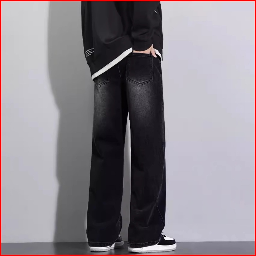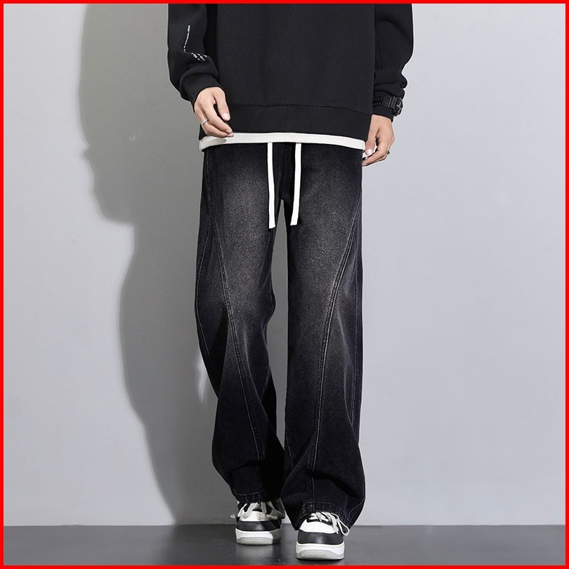 Keyboy Celana Panjang Pria Jeans Baggy Straight Cut Casual Loose Pinggang Karet Denim Pants Korean Style