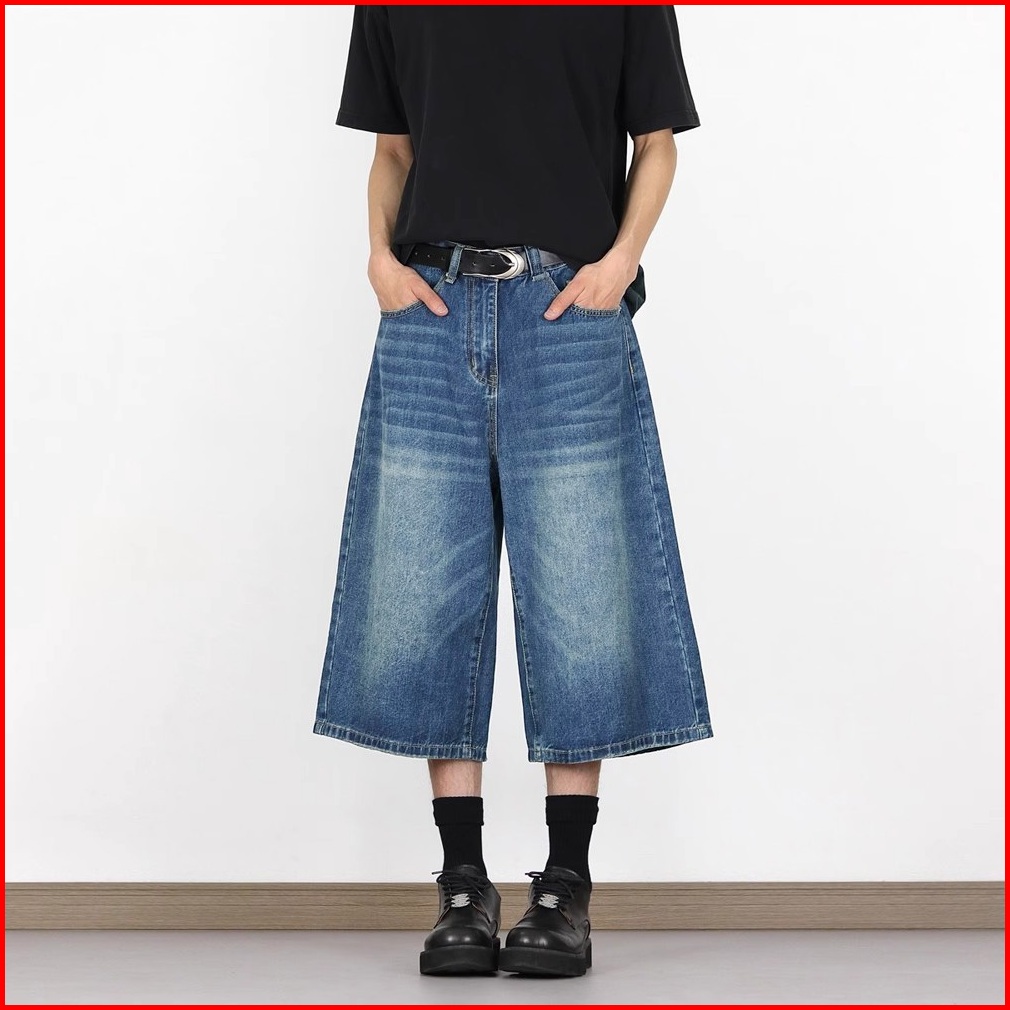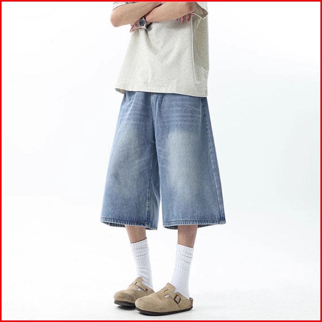 Keyboy Celana Jeans Pria Pendek Panjang Wide Leg Kulot Celana Dewasa Cowok Casual Denim Pants Korean Style