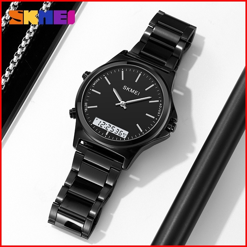 Skmei 2120 Original Jam Tangan Pria Dual Time Rantai Stainless Steel Tahan Air