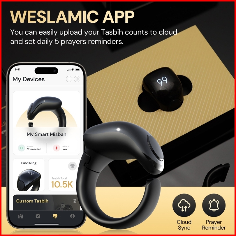 Weslamic Cincin Tasbih Digital Cincin Tasbih Zikir Ring Weslamic Itasbih Salam Anti Air 2 Ring Size