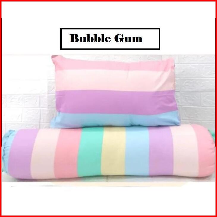 Promo Set Sarung Bantal Sarung Guling Motif Bubble Gum Bahan Katun Berkualitas Tinggi Adem Lembut