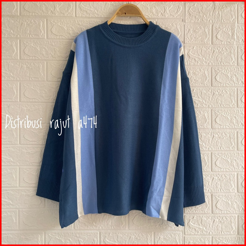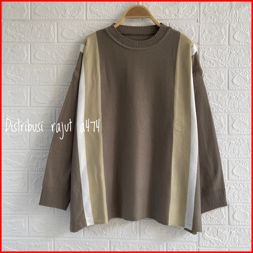 Oudet Atasan Sweater Oversize Stirpe Motif Kancing Samping Terbelah