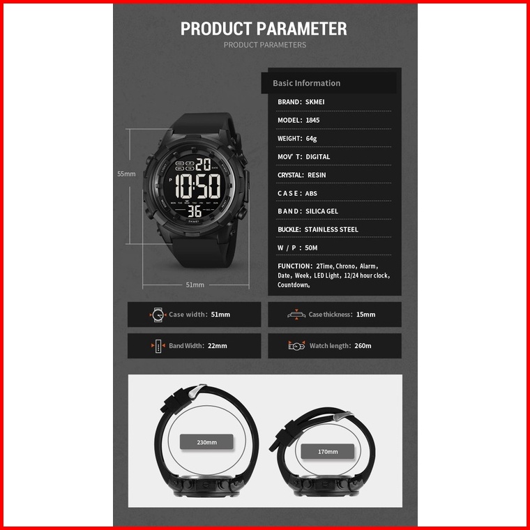 Skmei 1845 Original Jam Tangan Digital Pria Karet Tahan Air