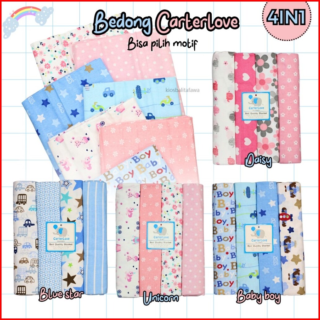 Isi 4 Bedongan Baby New Born Bahan Katun - Alas Motif Carter Love Perlengkapan Bayi Perempuan Laki Laki Bedong Selimut B