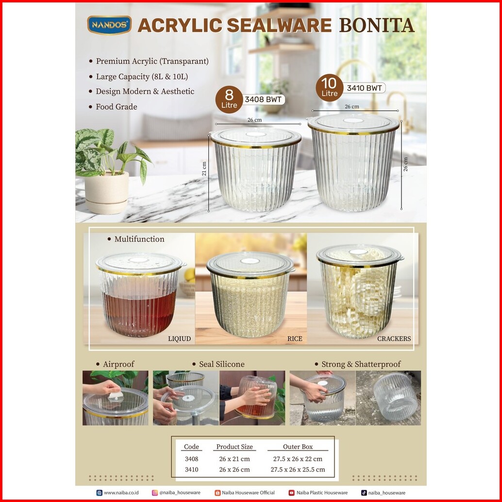 Sealware Toples Acrylic Nandos 8 Dan 10 Liter
