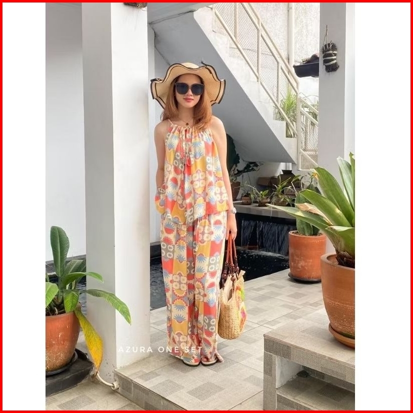 Azura Set Piyama Wanita Set Celana Panjang Wanita Bahan Rayon Premium Setelan Wanita Lengan Tali Kutung Model Kekinian T