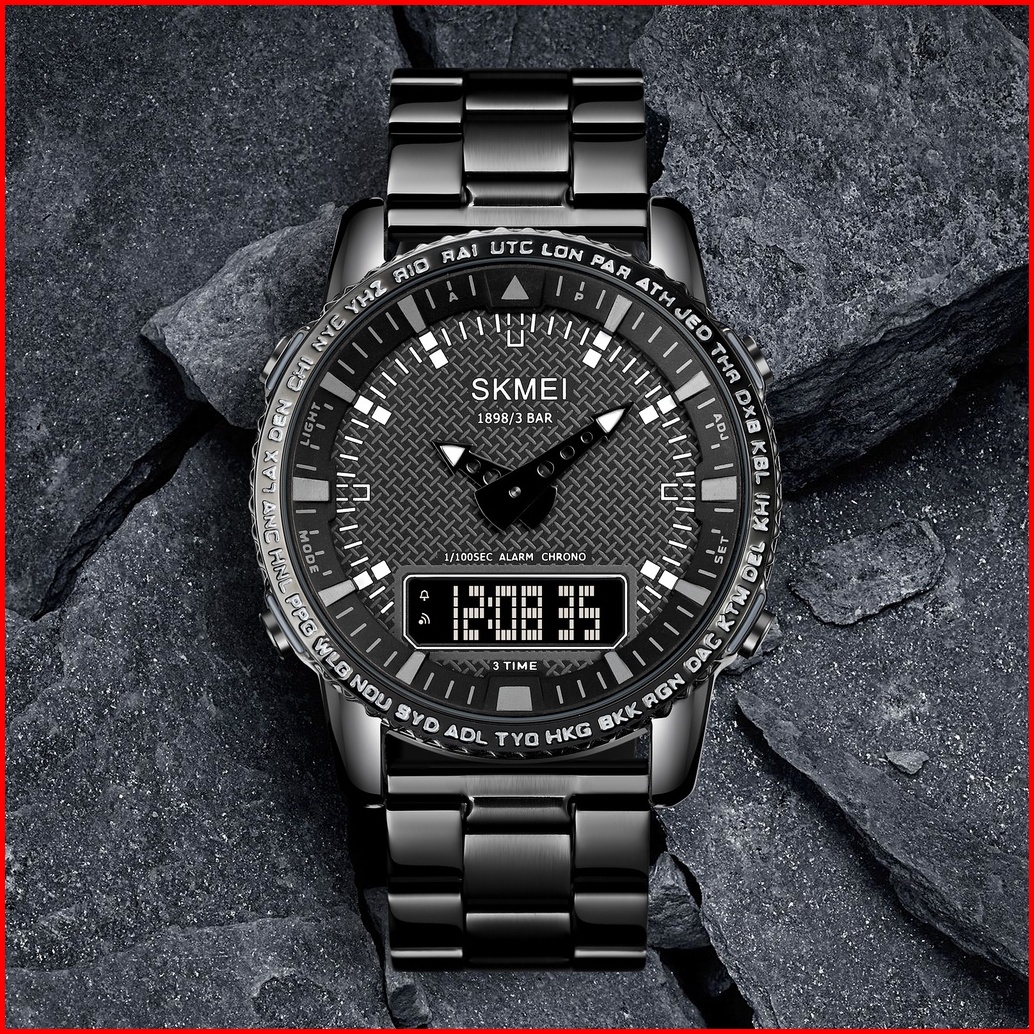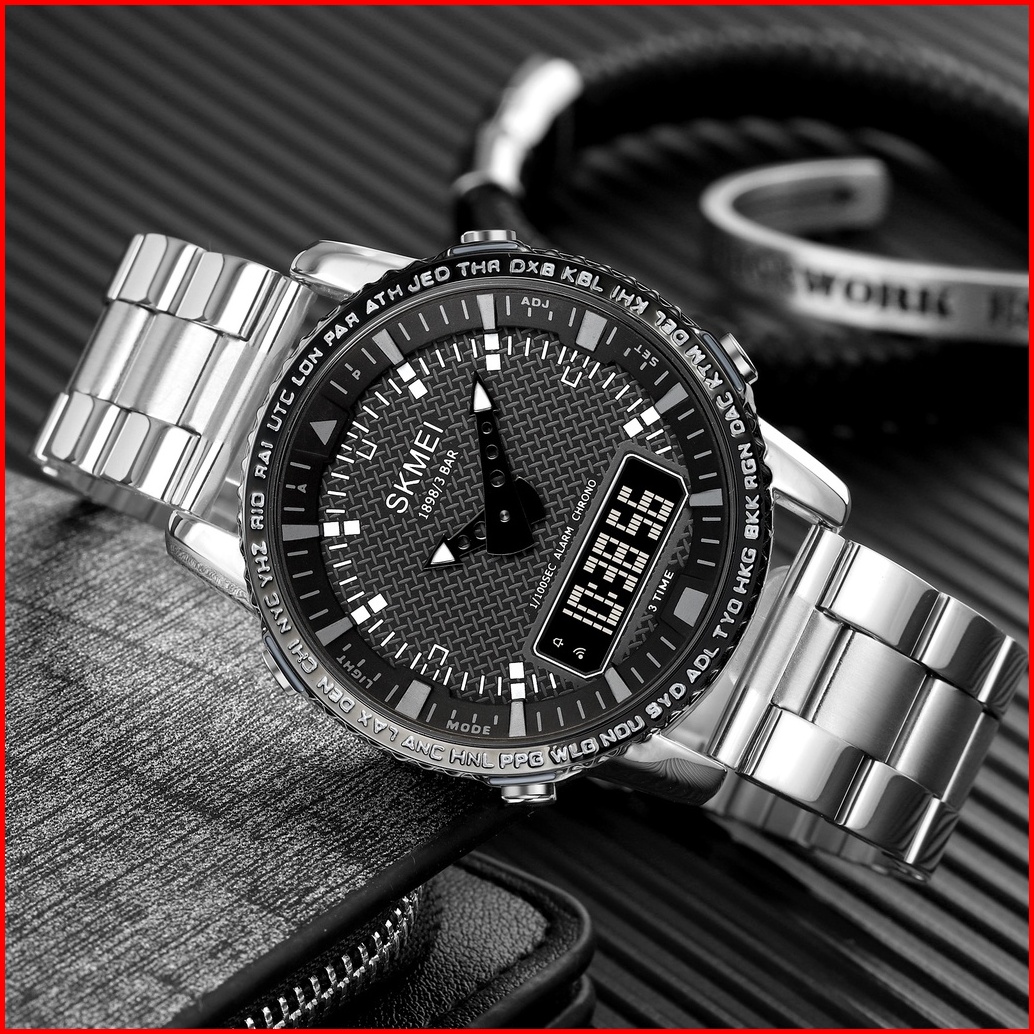 Skmei 1898 Original Jam Tangan Pria Dual Time Stainless Steel Jam Tangan Tahan Air