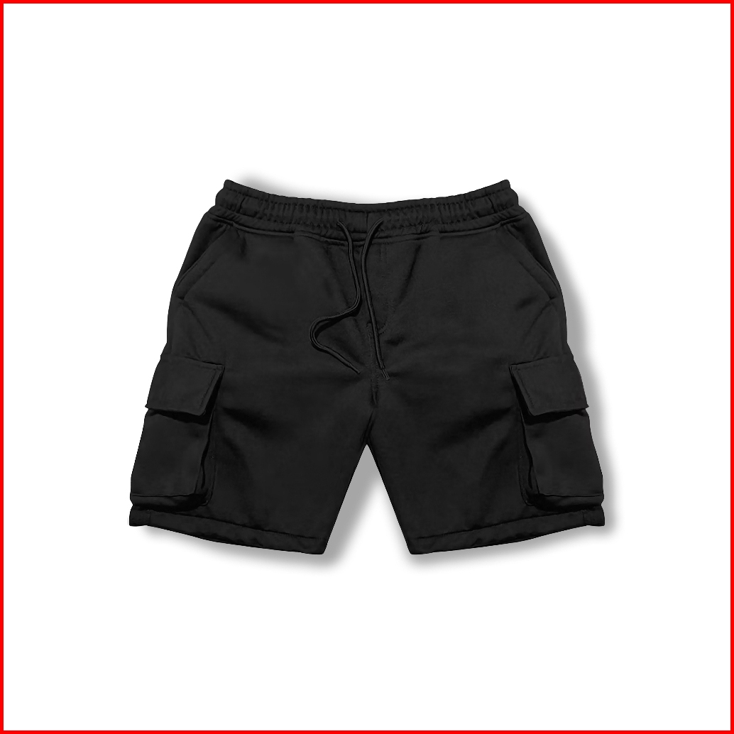 Unimale - Celana Pendek Pria Cargo Pants Fleece Hitam Polos