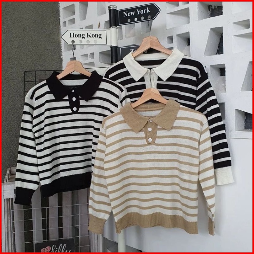 Polo T-shirt Stripe Mely Knit Top