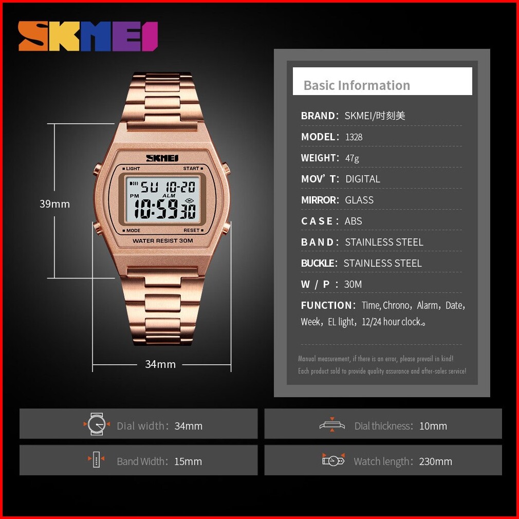 Skmei 1328 Original Jam Tangan Pria Wanita Digital Rantai Stainless Steel Tahan Air