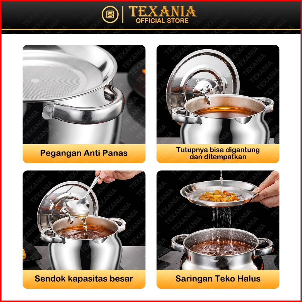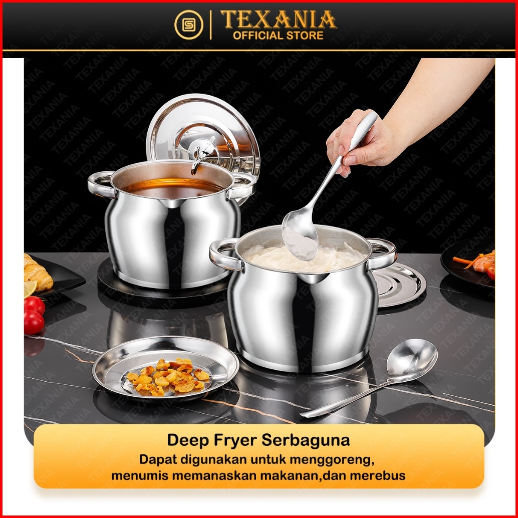 11.11 Sale Texania Deep Fryer 5in1 Wadah Penyaring Minyak Multifungsi Bahan Panci Soup Teko Stainless Steel Anti Karat T