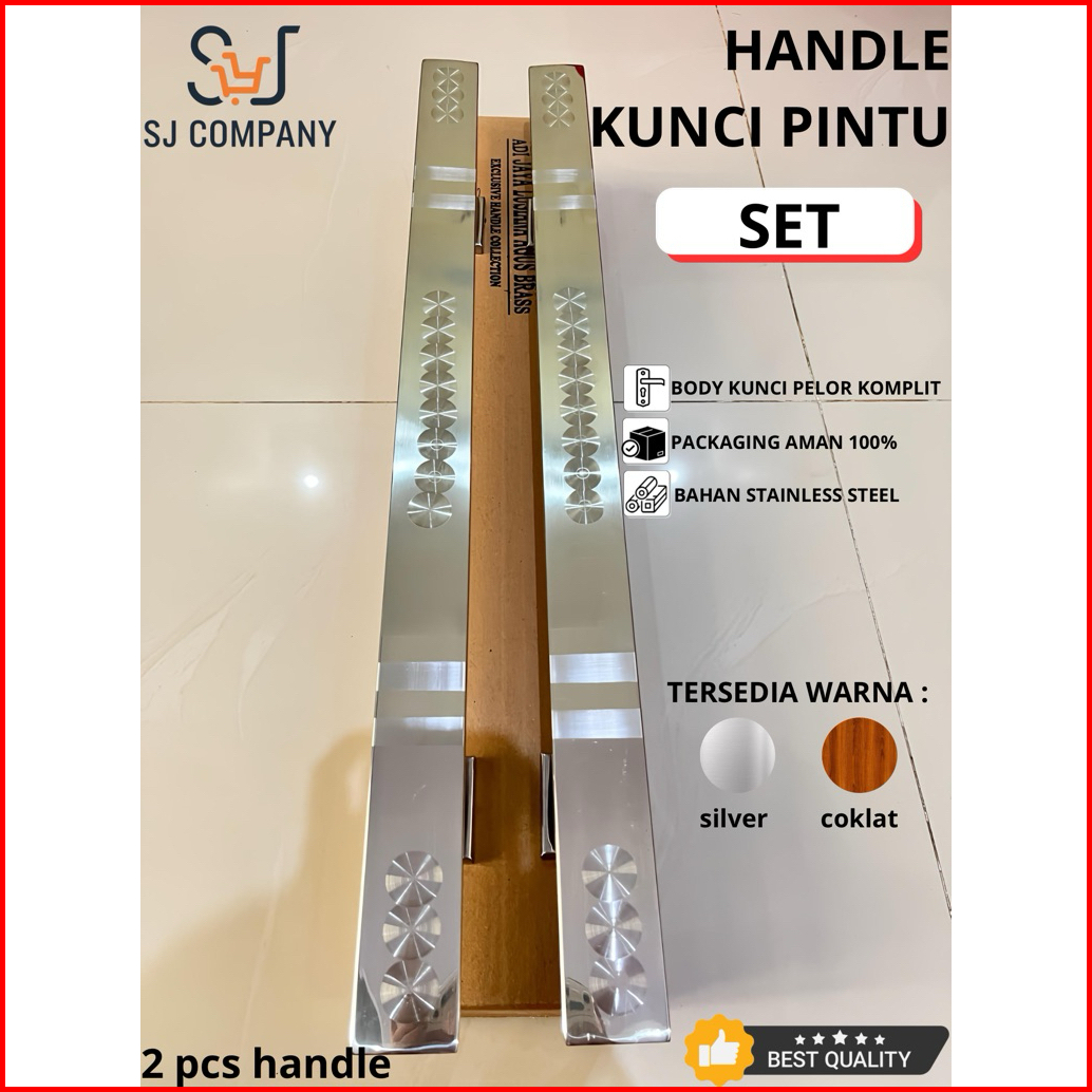 Gagang Pintu Rumah 2 Pintu Handle Pintu Minimalis Kunci Pintu Set Lengkap Panjang 45cm 60cm