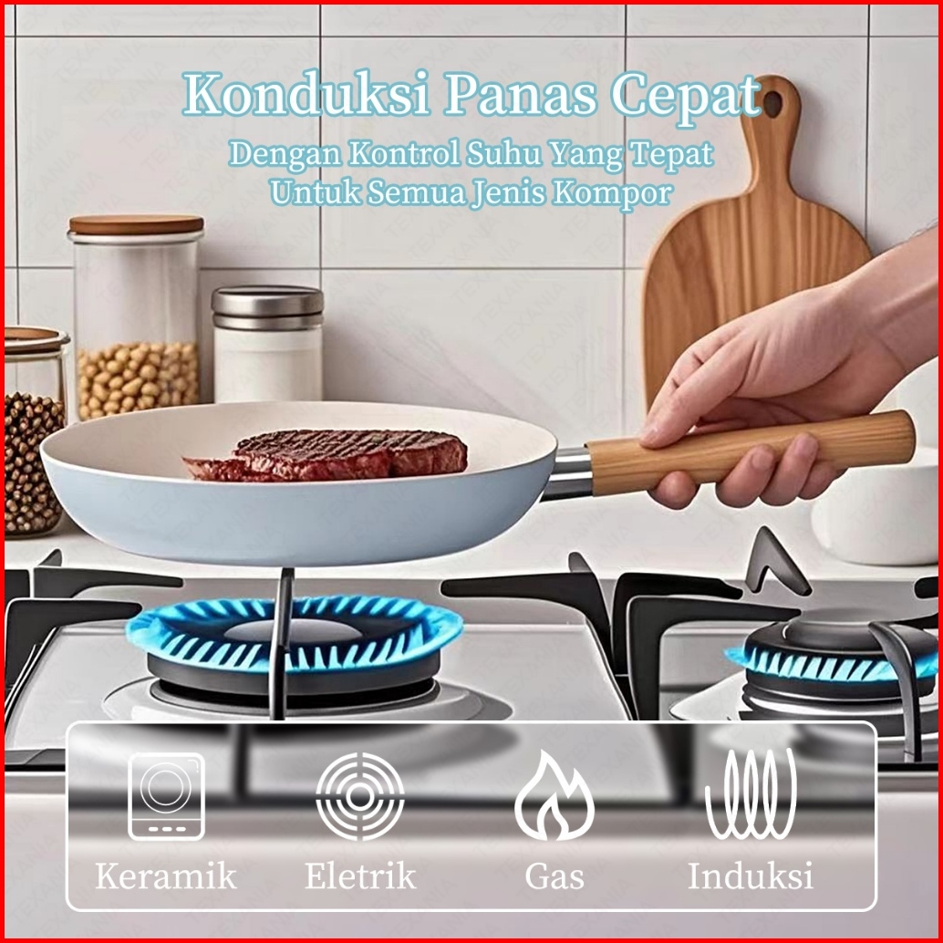 Texania Panci Anti Lengket 20 Cm Aluminium Wajan Penggorengan Gunakan Tanpa Minyak Bebas Pfoa Pfos
