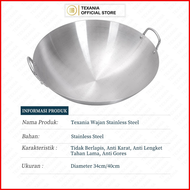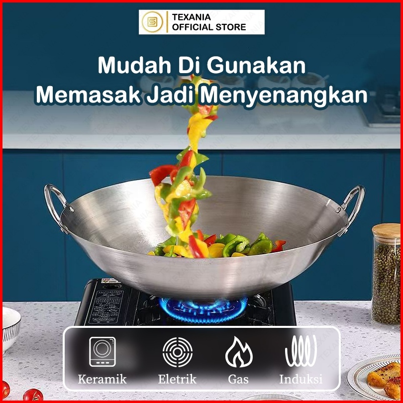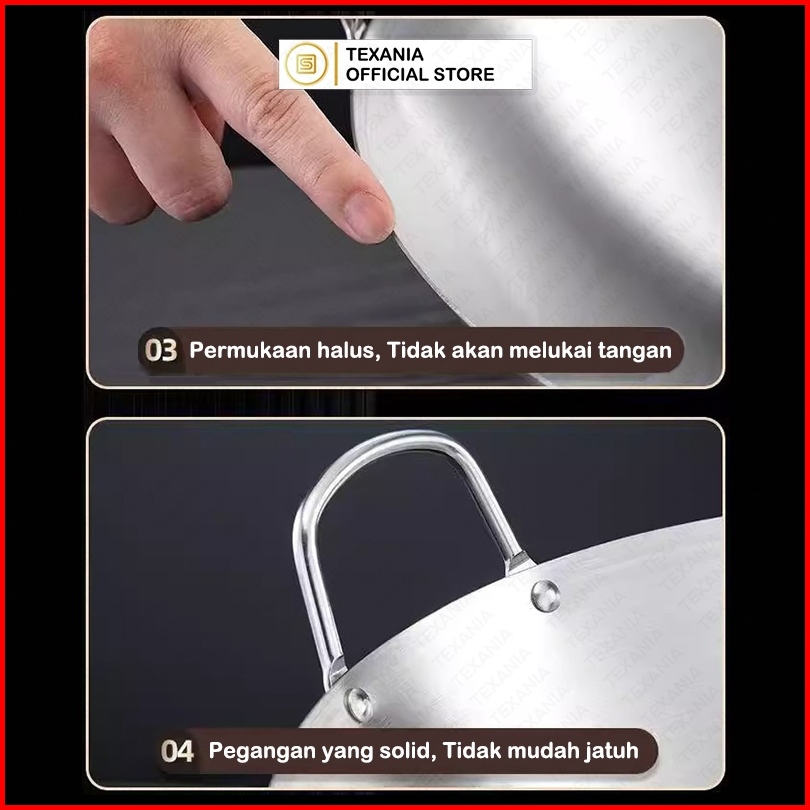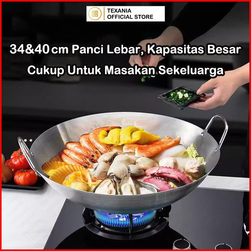 11.11 Sale Texania Wajan Stainless Wajan Set 34 40cm Premium Dengan Pegangan Kuali Besar Katel Anti Lengket