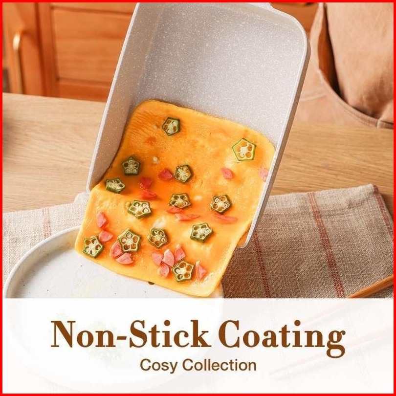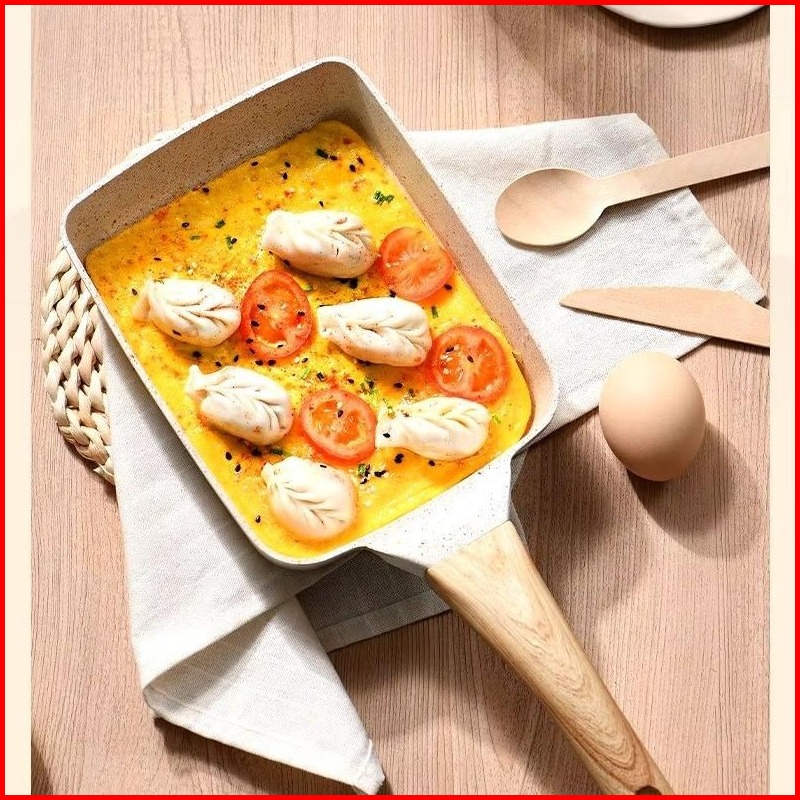 Texania White Granite Tamagoyaki Eggpan Penggorengan Telur Anti Lengket Omelette Anti Lengket 18cm Bonus Panci Mie Warna