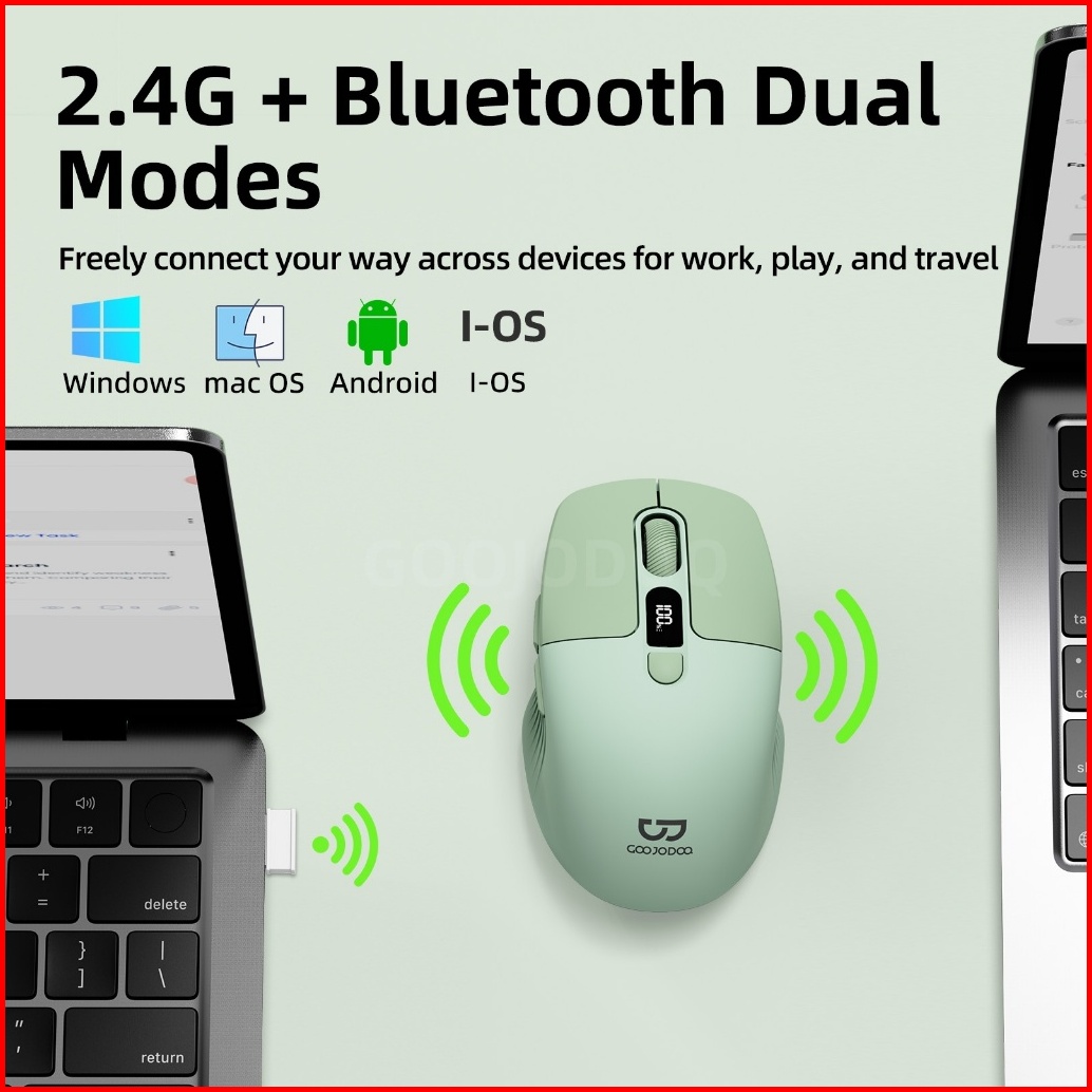 Goojodoq Wireless Mouse 4000dpi 2.4ghz Mouse Ergonomic Scrolling Battery Display Bluetooth Mouse