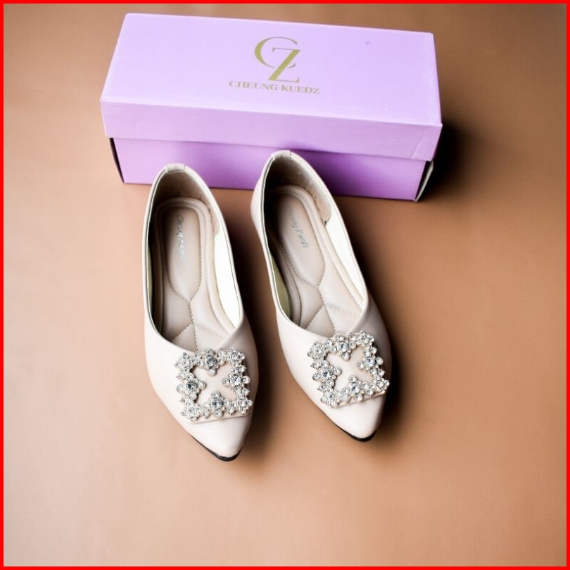Cheung Kuedz Alice Sepatu Balet Wanita Terbaru Flatshoes Pita Mutiara