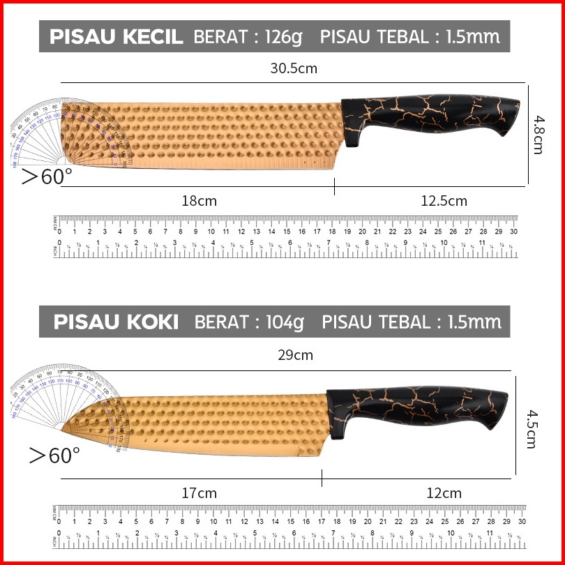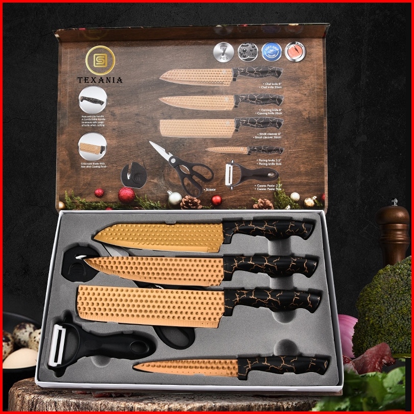 Texania Set Pisau Stainless Steel Isi 7pcs Itanium Warna Peralatan Dapur 7pcs Peralatan Dapur Pisau Tajam Tempat Penyimp