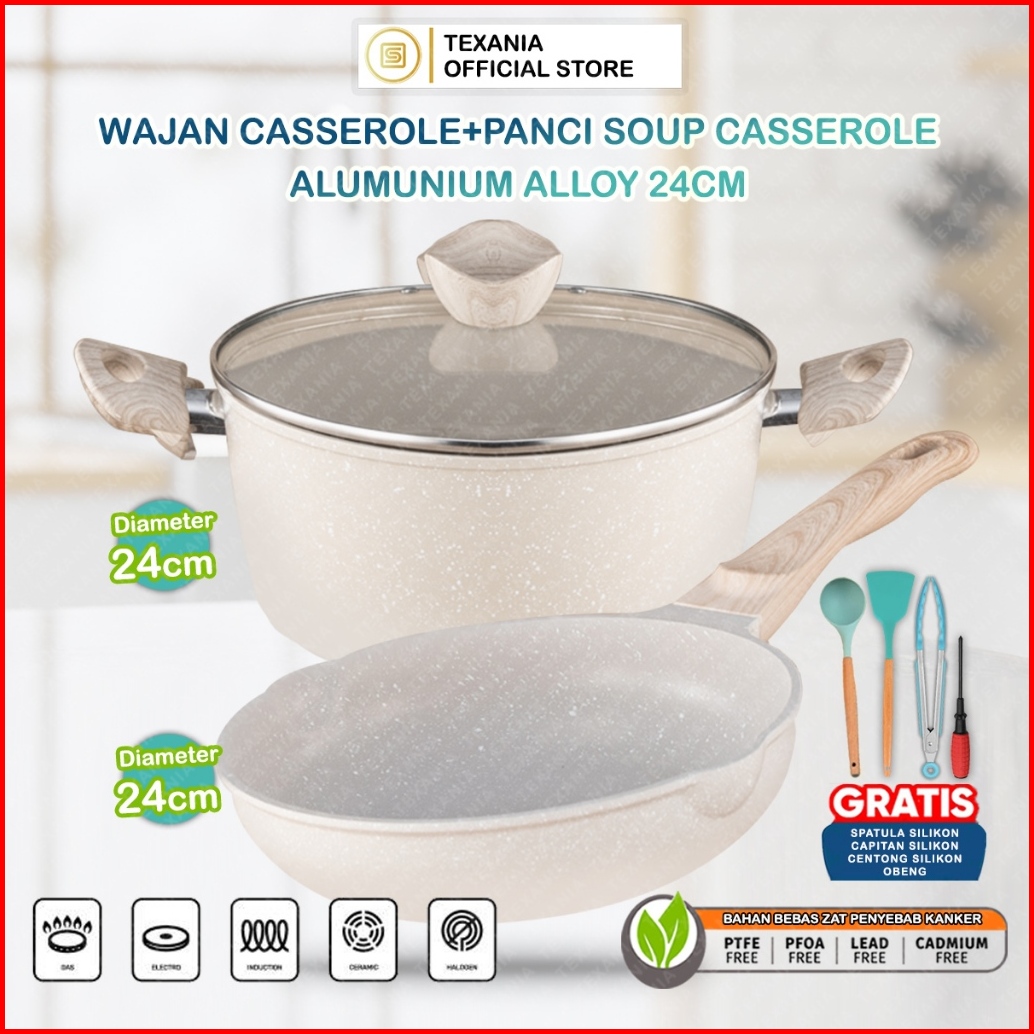 Texania Paket Kombo Spescial Panci Soup Wajan Casserole Allumunium Alloy Anti Lengket 24cm Free Centong Spatula Capitan