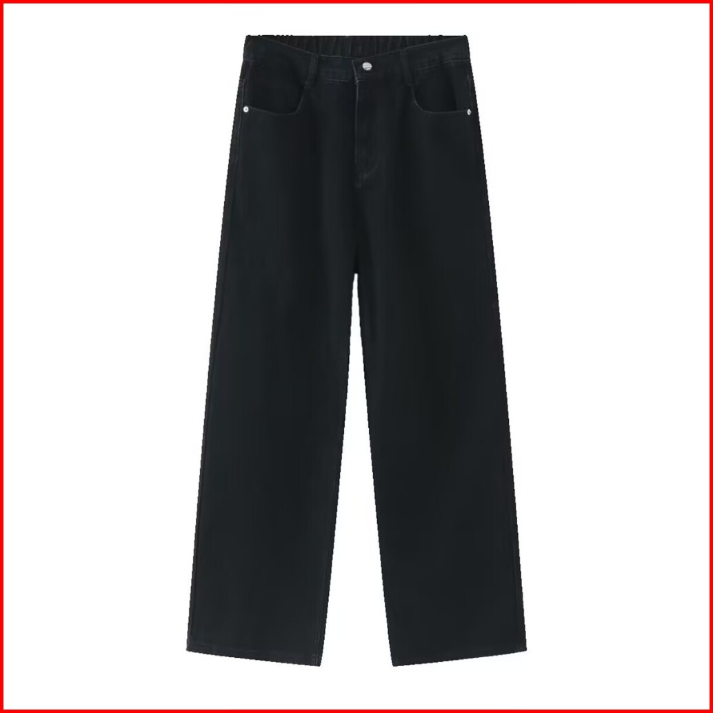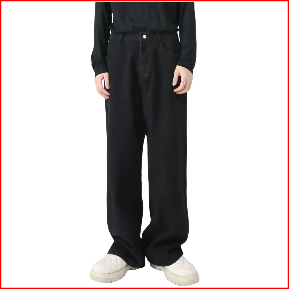 St.lab Studio Jeans Pria - Jeans Lurus Hitam - Jeans Longgar Kaki Lebar Pinggang Elastis