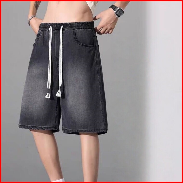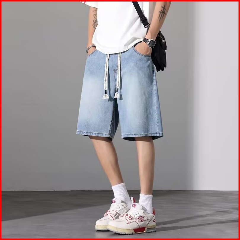 St.labstudio Celana Pendek Denim Pria Celana Pendek Denim Lurus Dengan Tali Pinggang Elastis
