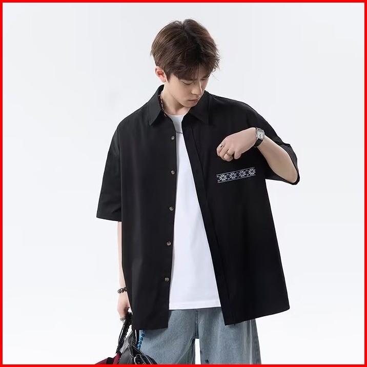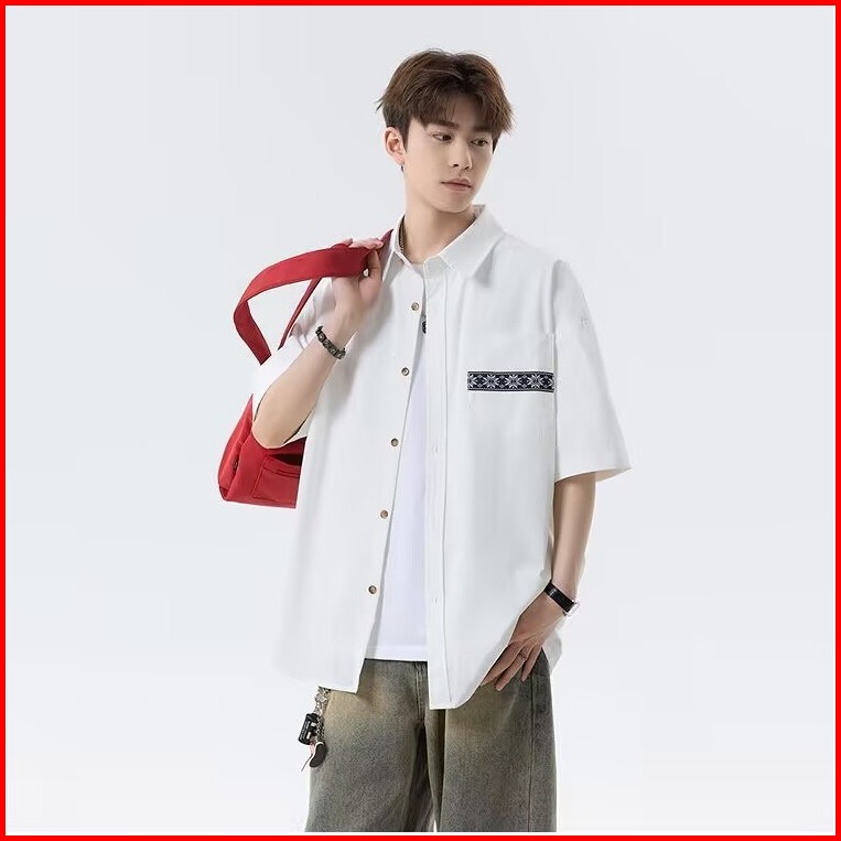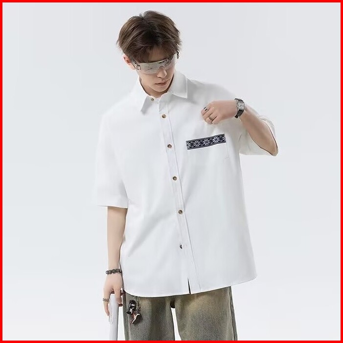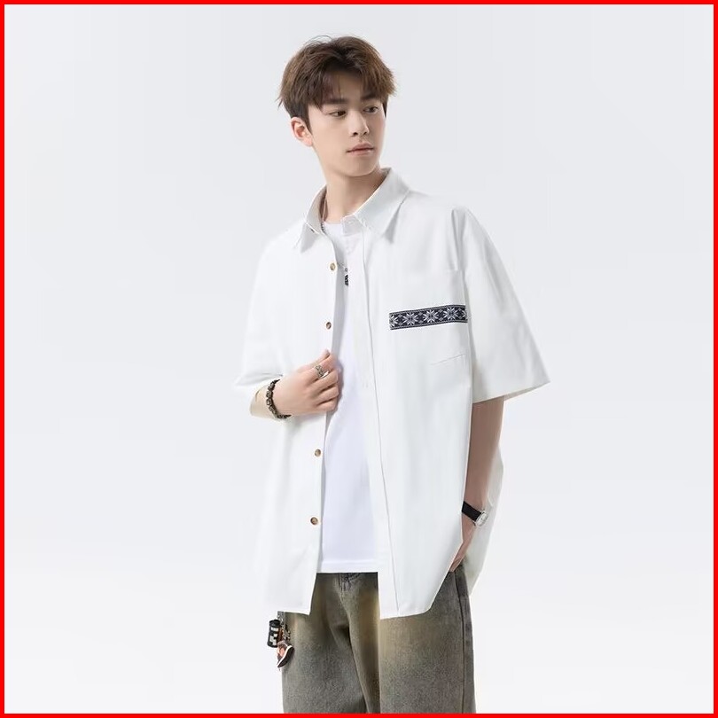 St.lab Studio Kemeja Pria Retro Longgar Putih Lengan Pendek Atasan Ukuran Besar Lengan Pendek