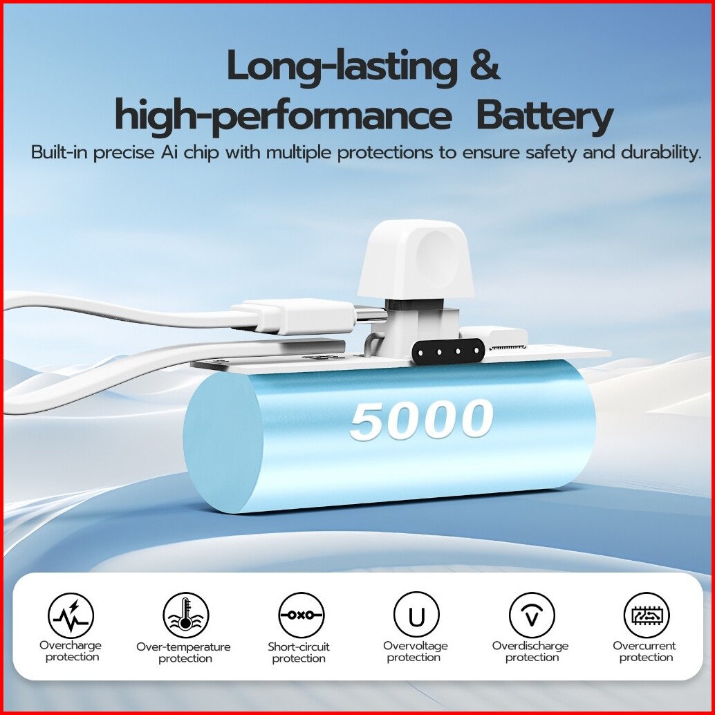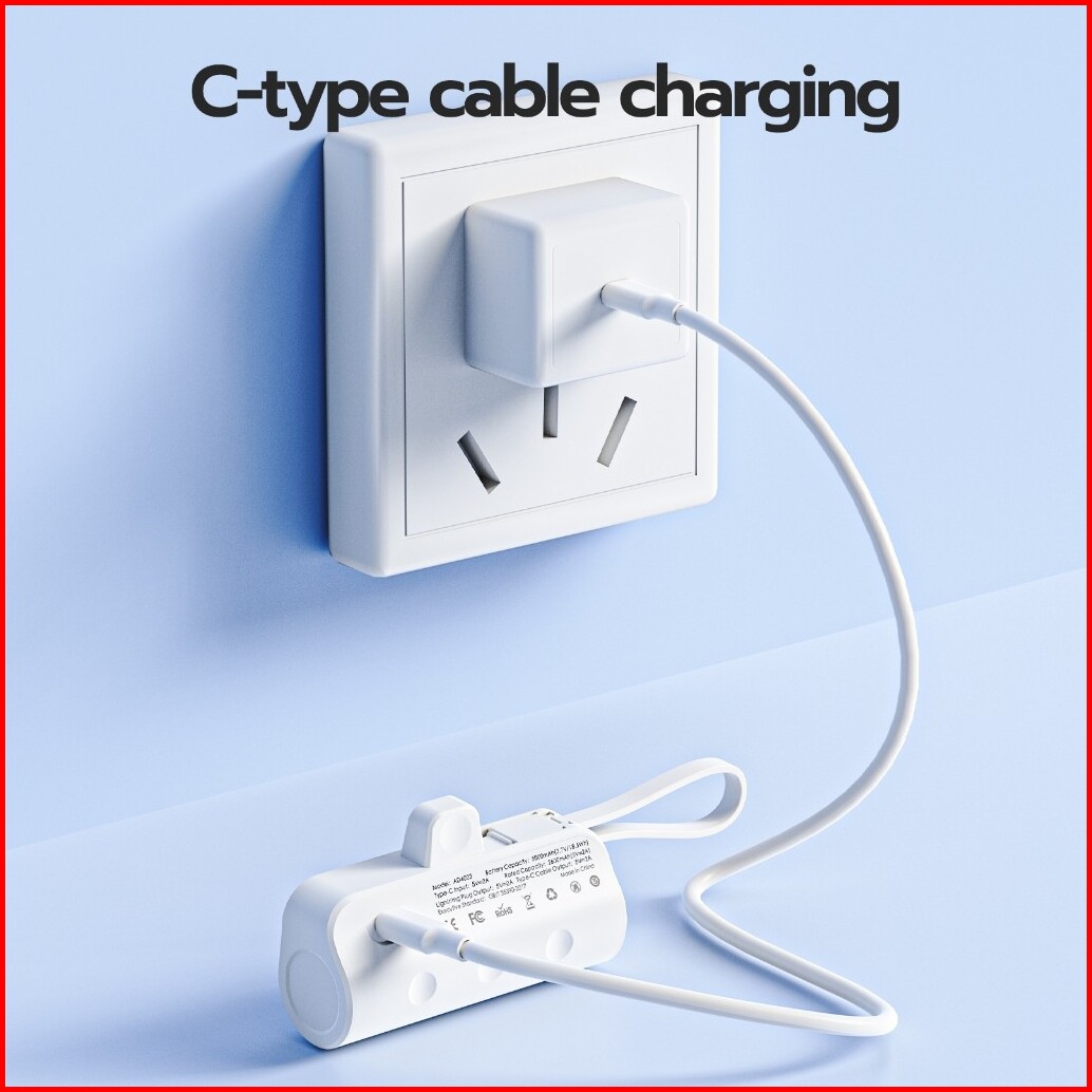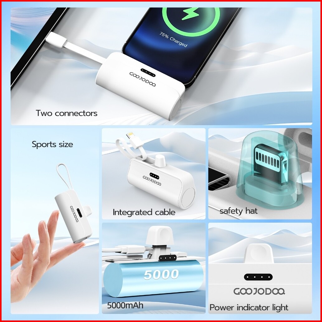 Goojodoq 5000mah Mini Power Bank For Iphone Android Phone Built-in Cable Compact Portable Charger Lightning Type C