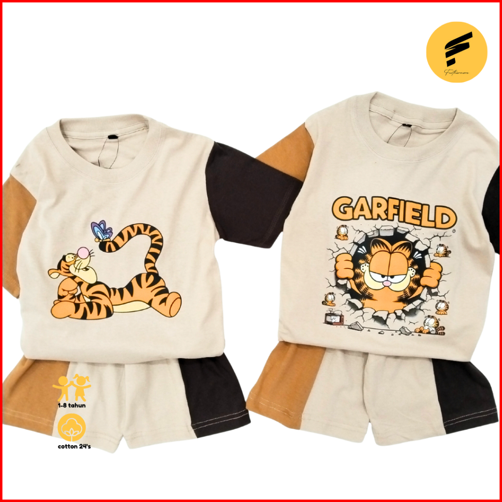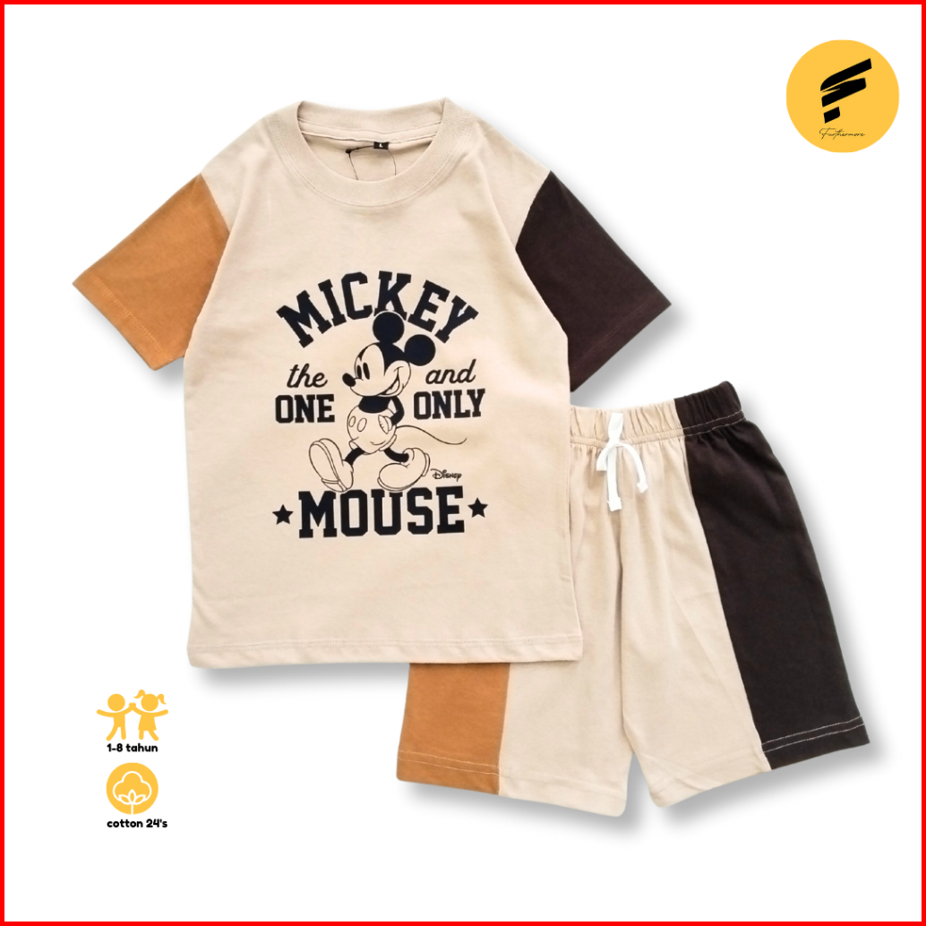 Setelan Kaos Celana Pendek Anak Karakter Lucu Bahan Cotton 24s Nyaman Usia 1-8 Tahun