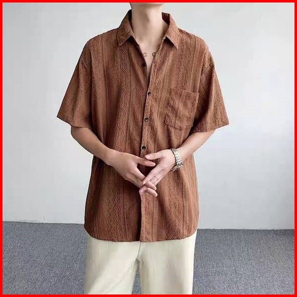 St.labstudio Kemeja Lengan Pendek Pria Jepang Retro Sederhana Berongga Lengan Pendek Atasan Kemeja