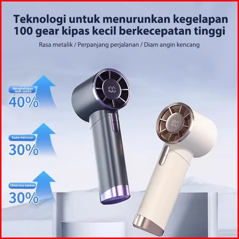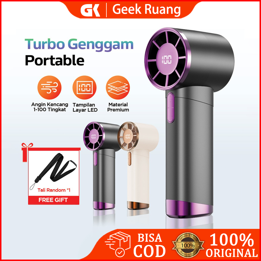 Kipas Turbo Portabel Kipas Genggam Mini Tampilan Daya Led Kipas Genggam Portabel 100 Kecepatan Kipas Turbo 100 Kecepatan
