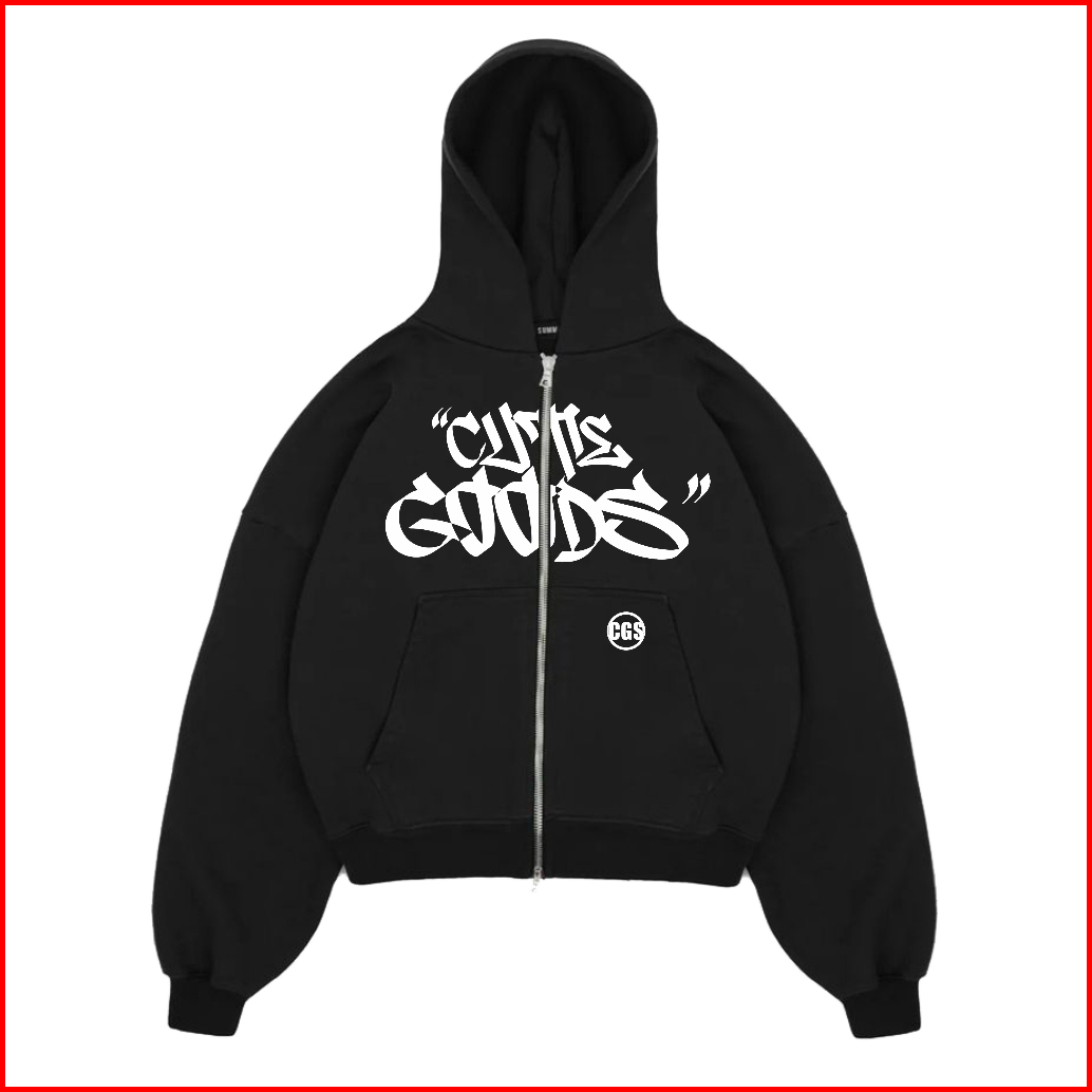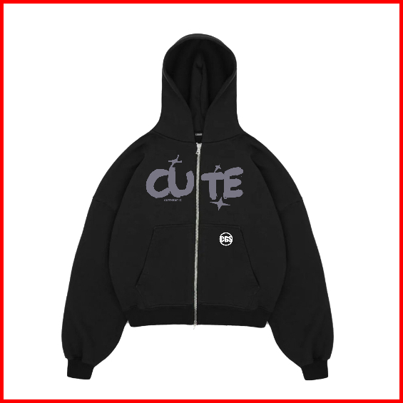 Cutegoods - Hoodie Boxy Zipper Storeas Hitam