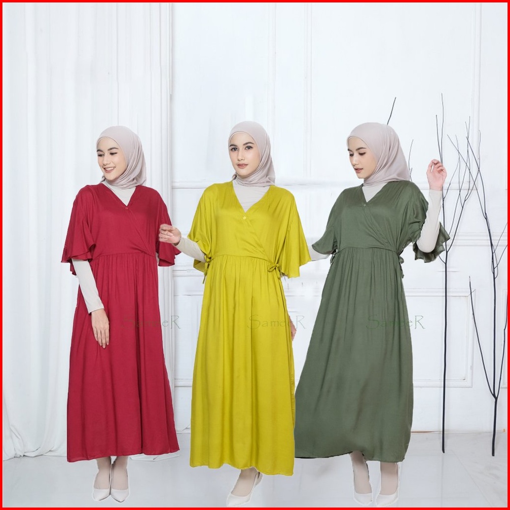 Daster Kekinian Dress Polos Kimono Busui Tali Samping Panjang Semata Kaki Bahan Rayon