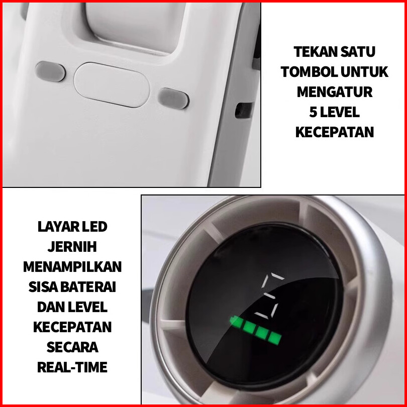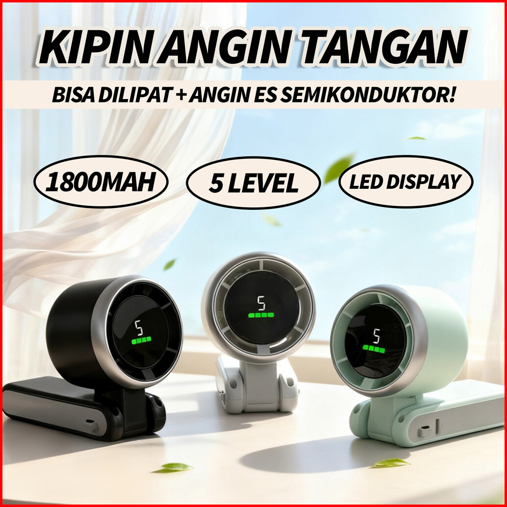 Kipas Angin Portable Lipat 180 1800mah 5 Level I Kipas Lipat Meja Charger Type-c Led Display Tali Leher