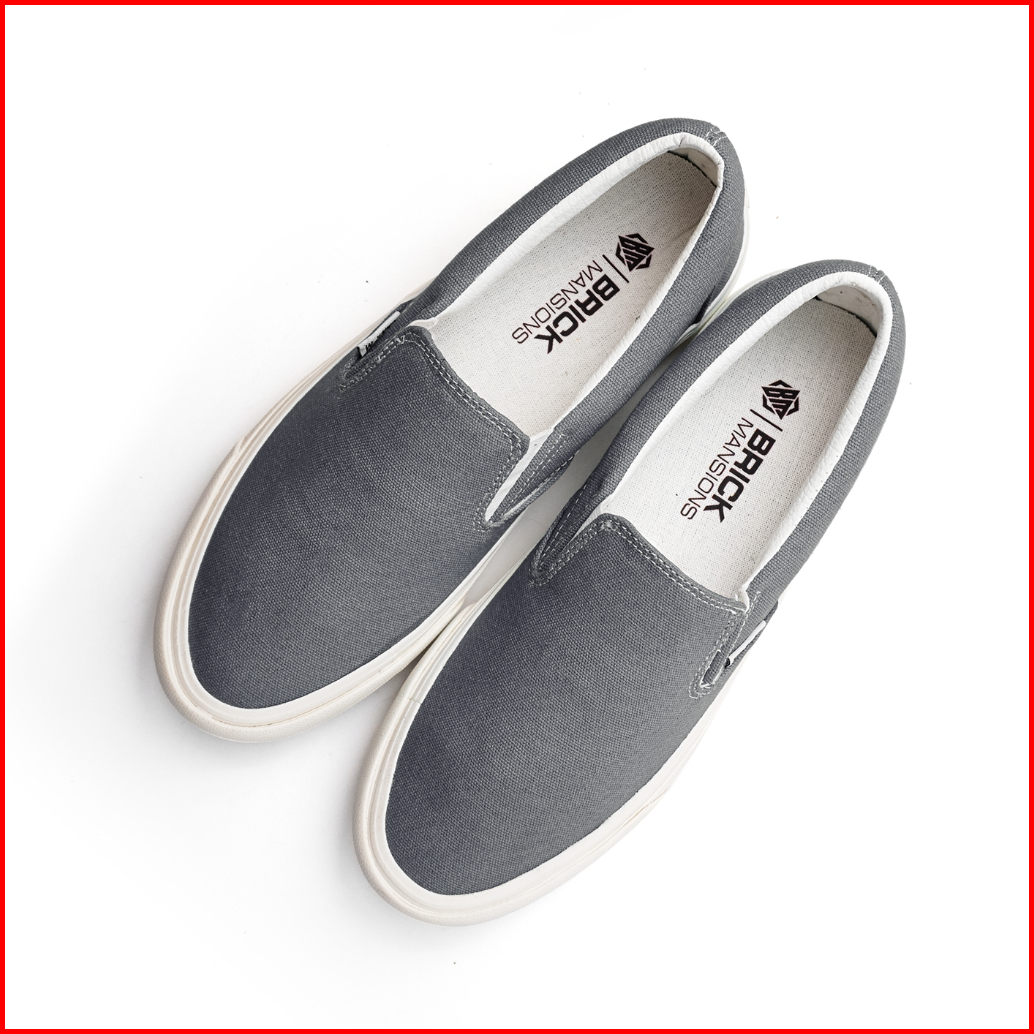 Brick Mansions - Mission Grey White Sepatu Slip On Sneakers Casual Pria Wanita
